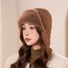 Chapéu de Cordeiro Outono e Inverno Feminino Estilo Coreano Bonito Pelúcia Lei Feng Chapéu para o rosto Pequeno Quente Engrossado Proteção Auricular Chapéu Cabeça Grande