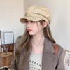 Boina de laço estilo coreano feminina outono e inverno rosto retrô mostrado pequeno ajuste rosto quadrado chapéu octogonal chapéu de pintor de jornaleiro