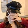 Boné japonês retrô de couro PU estilo punk marinho estilo marinheiro octogonal infantil mostra rosto pequeno estilo americano retrô pintor boina