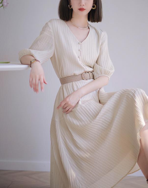 Vestido de Verão Chique 2025 para Senhoras, Luxo Acessível, Elegante, Elegante Intelectual, Vestido de Verão Fashion e Chique