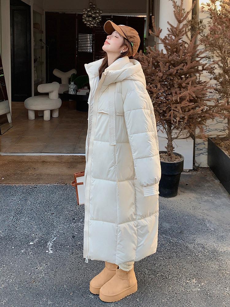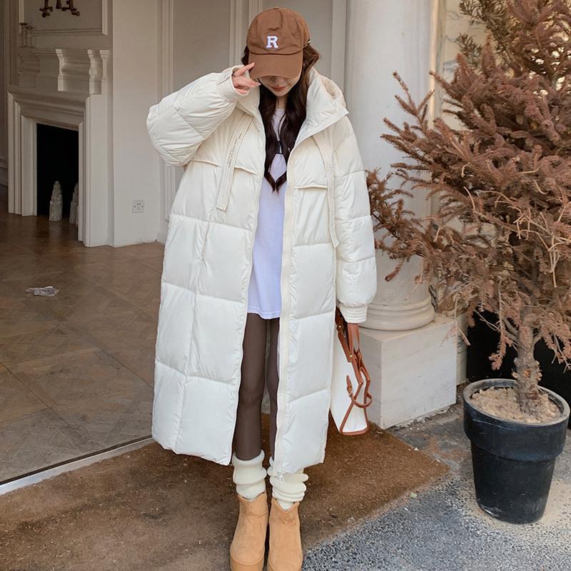 2024 inverno nova moda coreana solta algodão-acolchoado jaqueta feminina joelho longo com capuz acolchoado jaqueta casaco maré