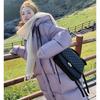 Jaqueta de penas de pato branco de alta qualidade feminina longa acima do joelho 2024 nova jaqueta de penas com capuz solta transfronteiriça de outono e inverno