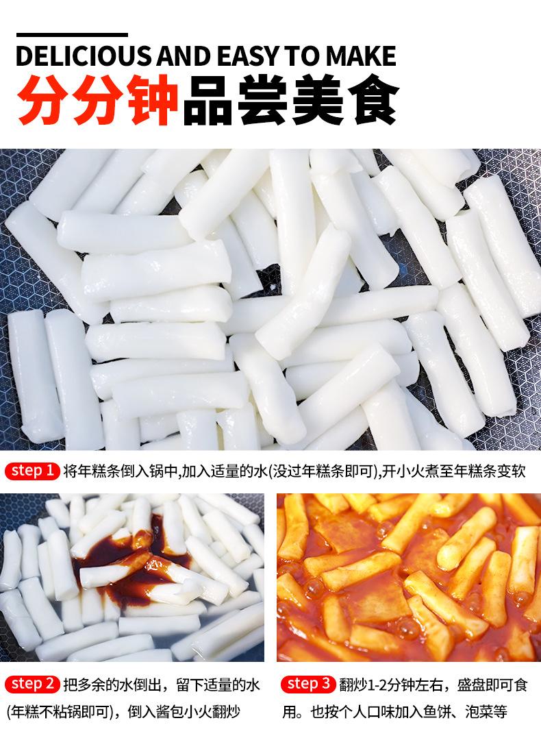 Atacado bolo de arroz de jardim limpo 450g pequenos sacos de bolo de arroz frito picante da Coreia do Sul arroz frito ingredientes da culinária coreana