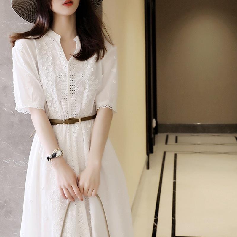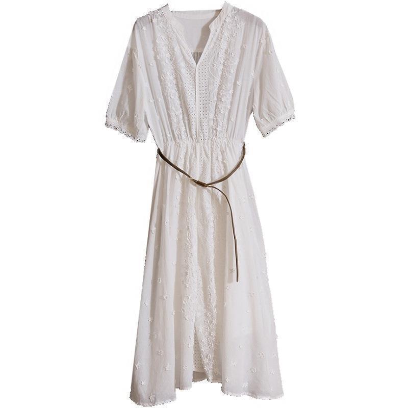 Vestido Francês Longo Primeiro Amor Renda Branca Feminino Verão 2025 Cintura Recortada Fada Francesa Saia Super Fada