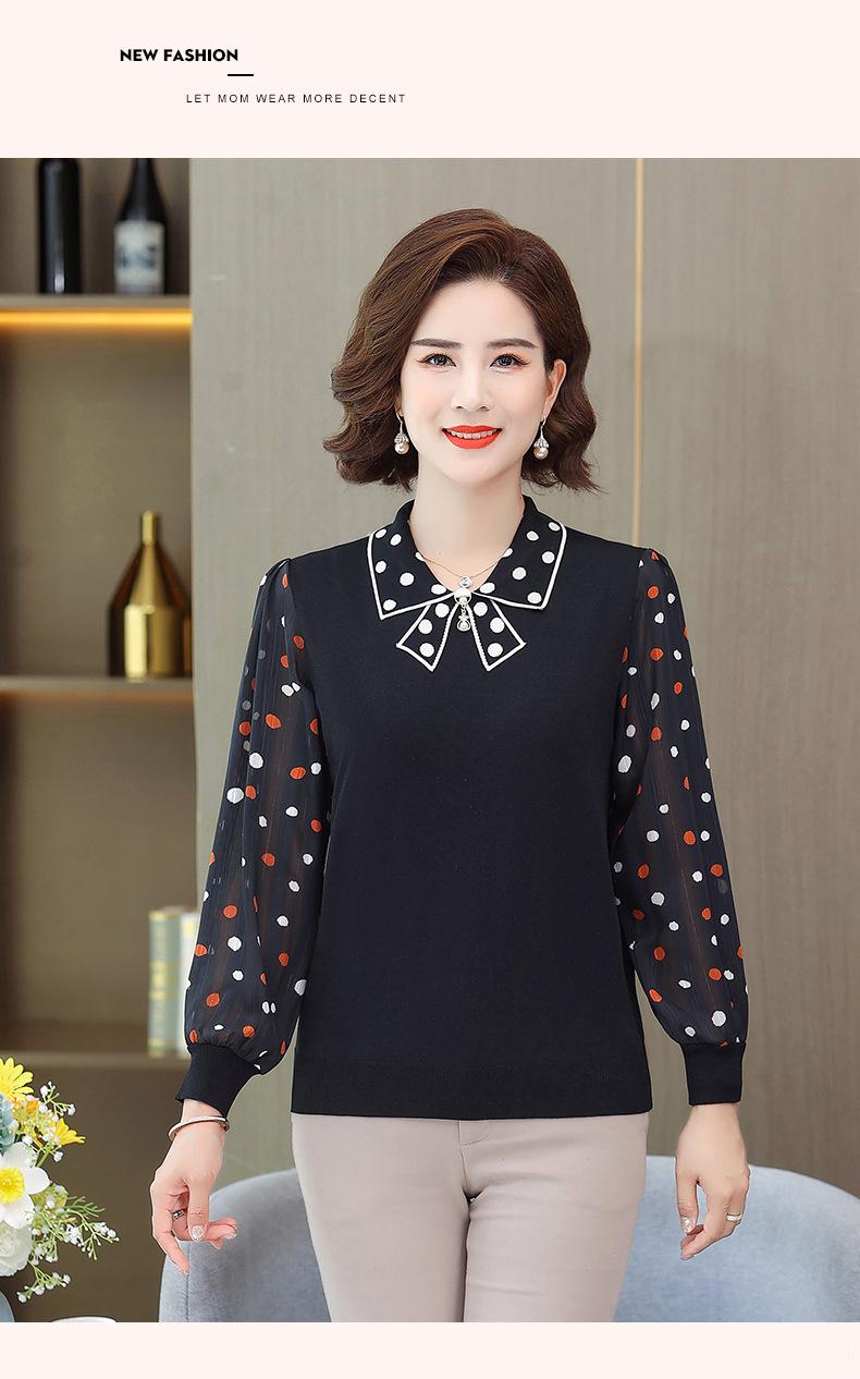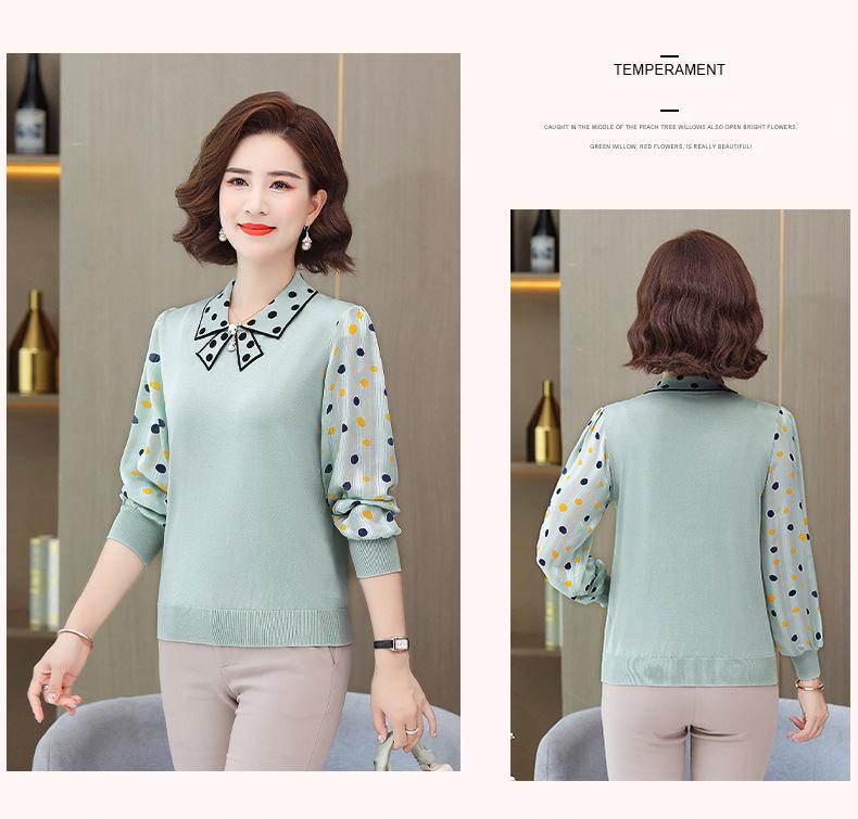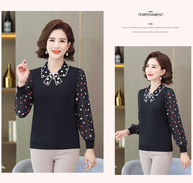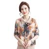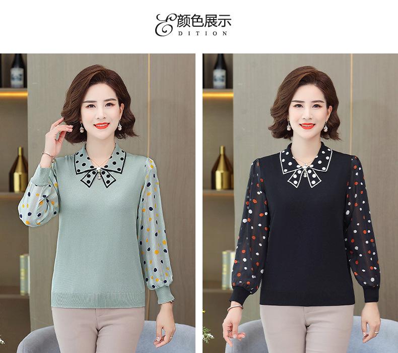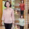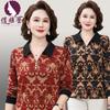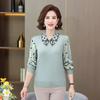 Camiseta de manga comprida estilo ocidental novo estilo primavera mãe feminina 40-50 meia-idade base camisa meia-idade e idosos verão top