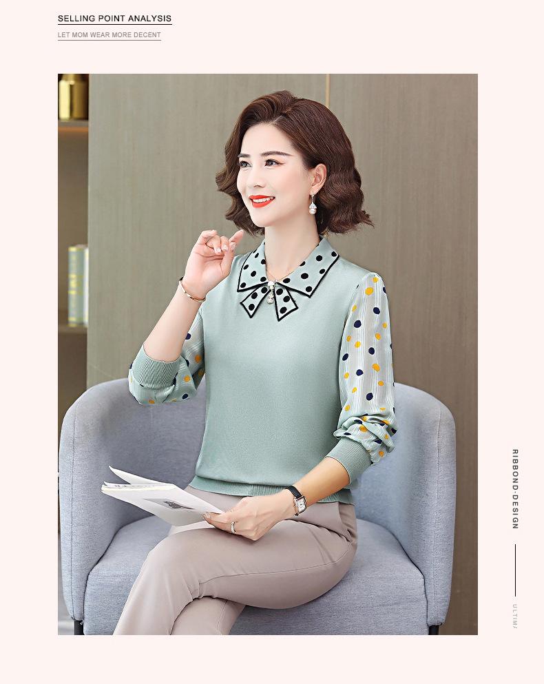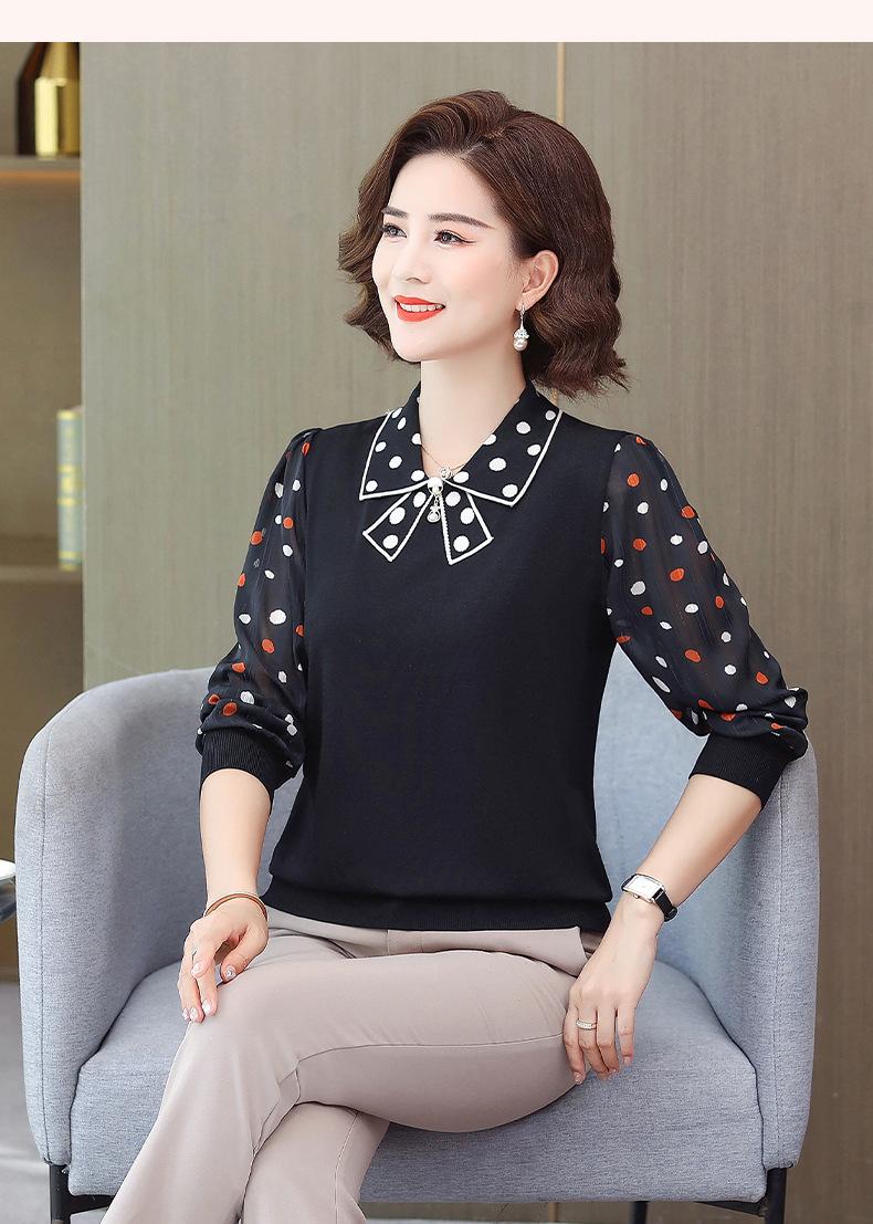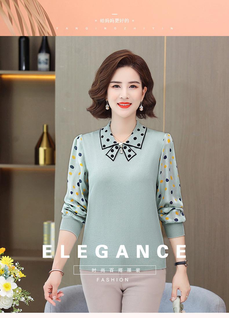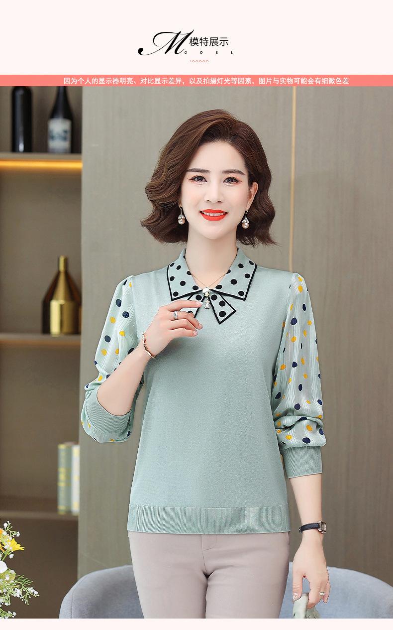 Camiseta de manga comprida estilo ocidental novo estilo primavera mãe feminina 40-50 meia-idade base camisa meia-idade e idosos verão top