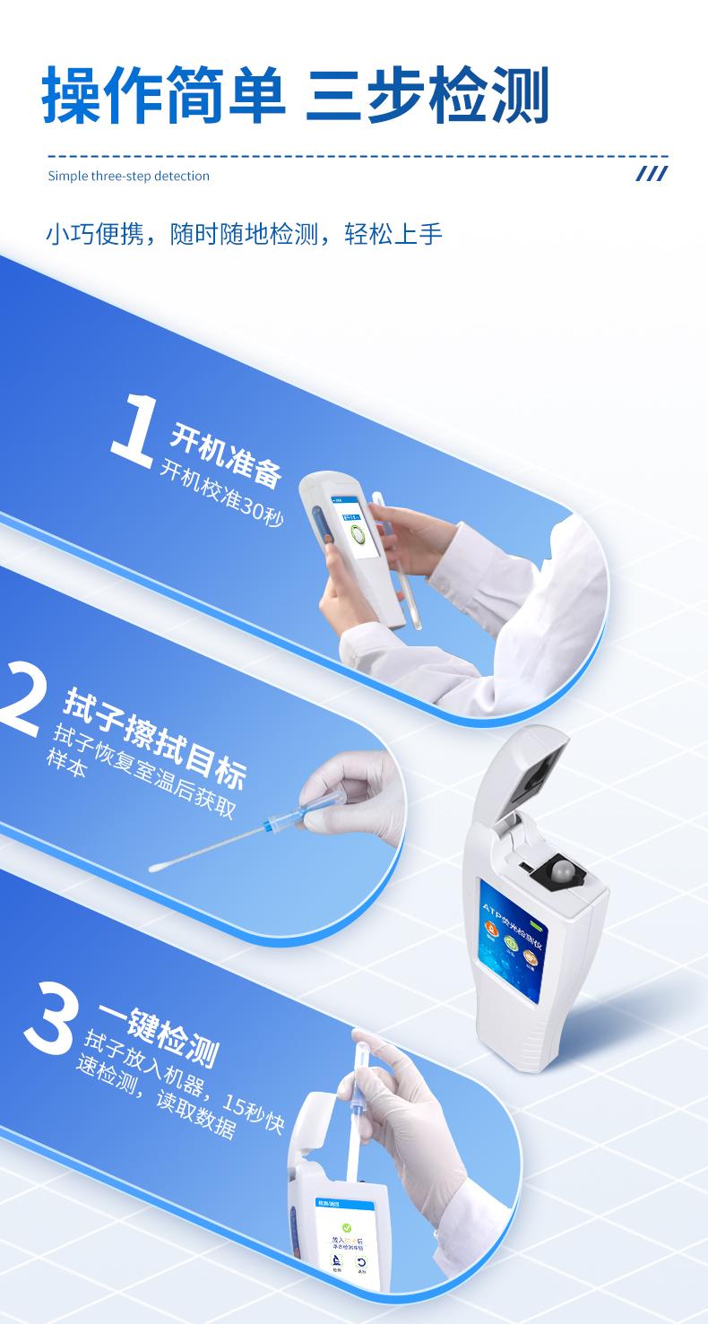 Detector de fluorescência ATP, utensílios de mesa de cantina, limpeza de superfícies, medição rápida, desinfecção, bactérias, microorganismos, equipamento de teste