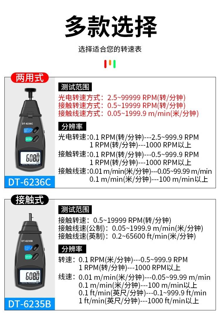 Dt-2234c+ tachometer-non-contact, Dt-2234a tachometer-non-contact, Dt-6235b tachometer-contact, Dt-6236c tachometer-dual-use type