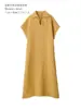 2025 Exportação Transfronteiriça Roupas Femininas Novas Casual Gola Redonda Manga Curta Bolso com Aba Calças Algodão e Linho Cor Sólida Vestido Feminino Saia Longa