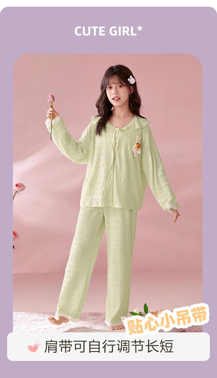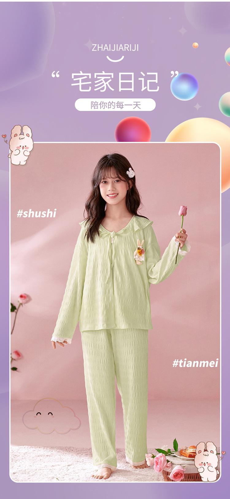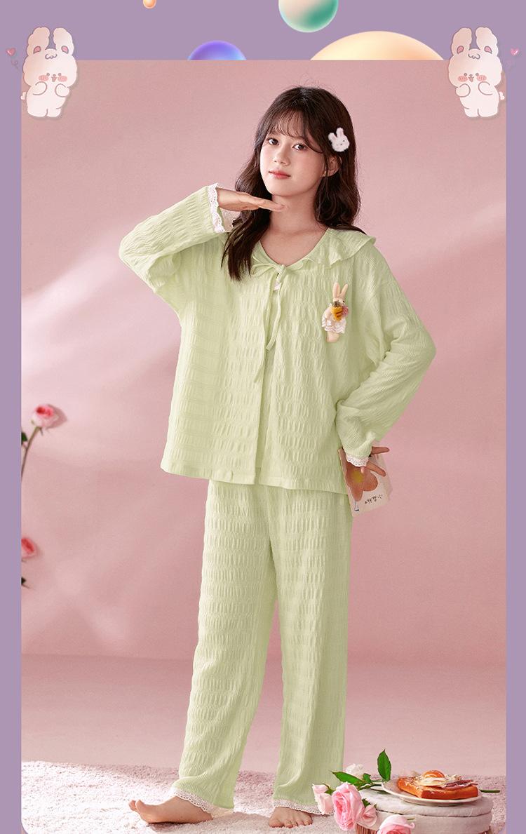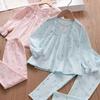 Pijama de primavera e outono para pais e filhos, meninas, algodão com babados, manga comprida, princesa, renda, solto, roupa de casa