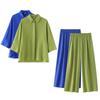 W00719 Regata Vintage Irregular de Manga Curta Conjunto Feminino 2024 Verão Conjunto Estilo Americano