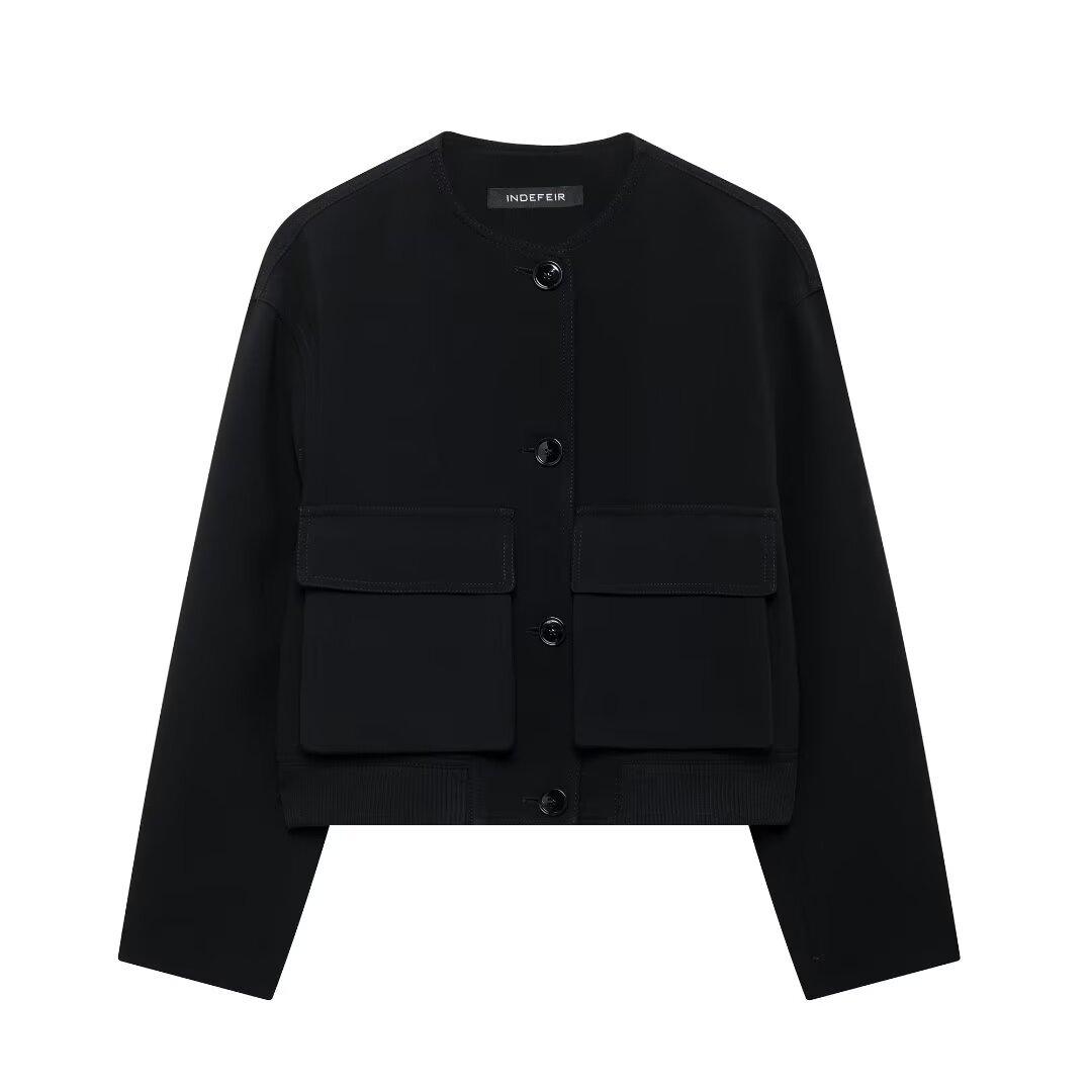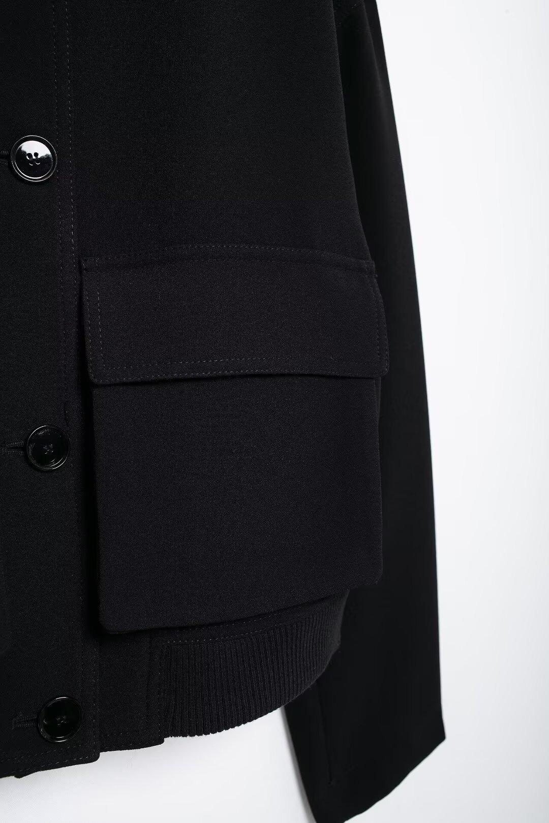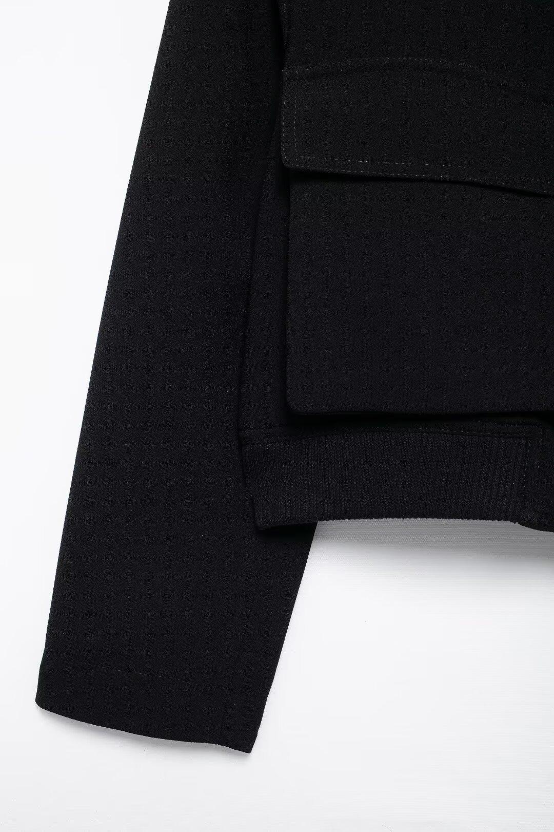 Casaco de bolso feminino preto 2024 estilo europeu e americano outono novo europeu e americano cross-border lazer moda
