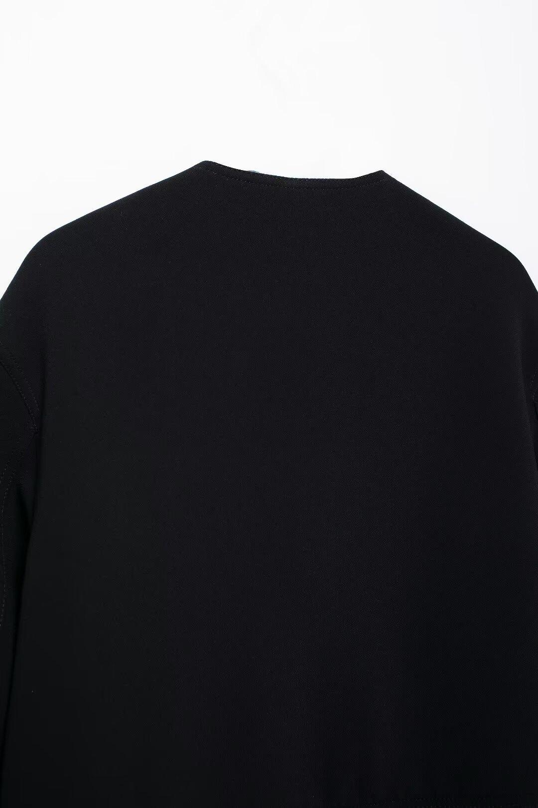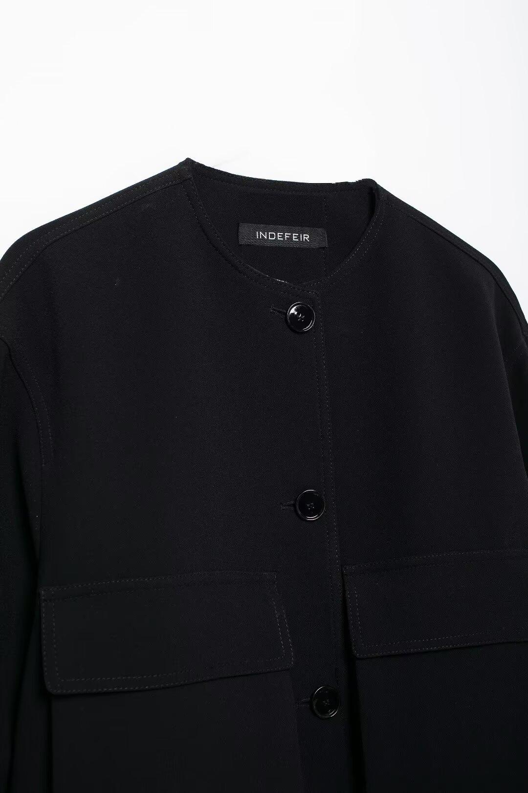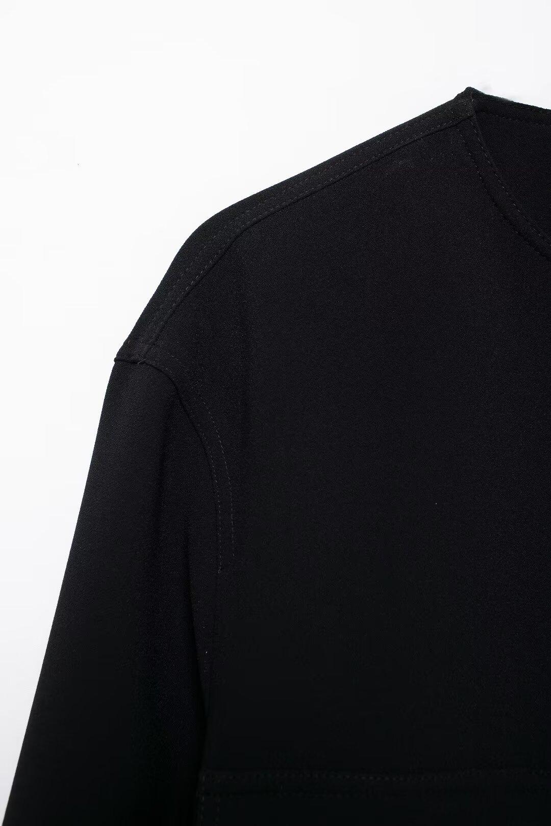 Casaco de bolso feminino preto 2024 estilo europeu e americano outono novo europeu e americano cross-border lazer moda