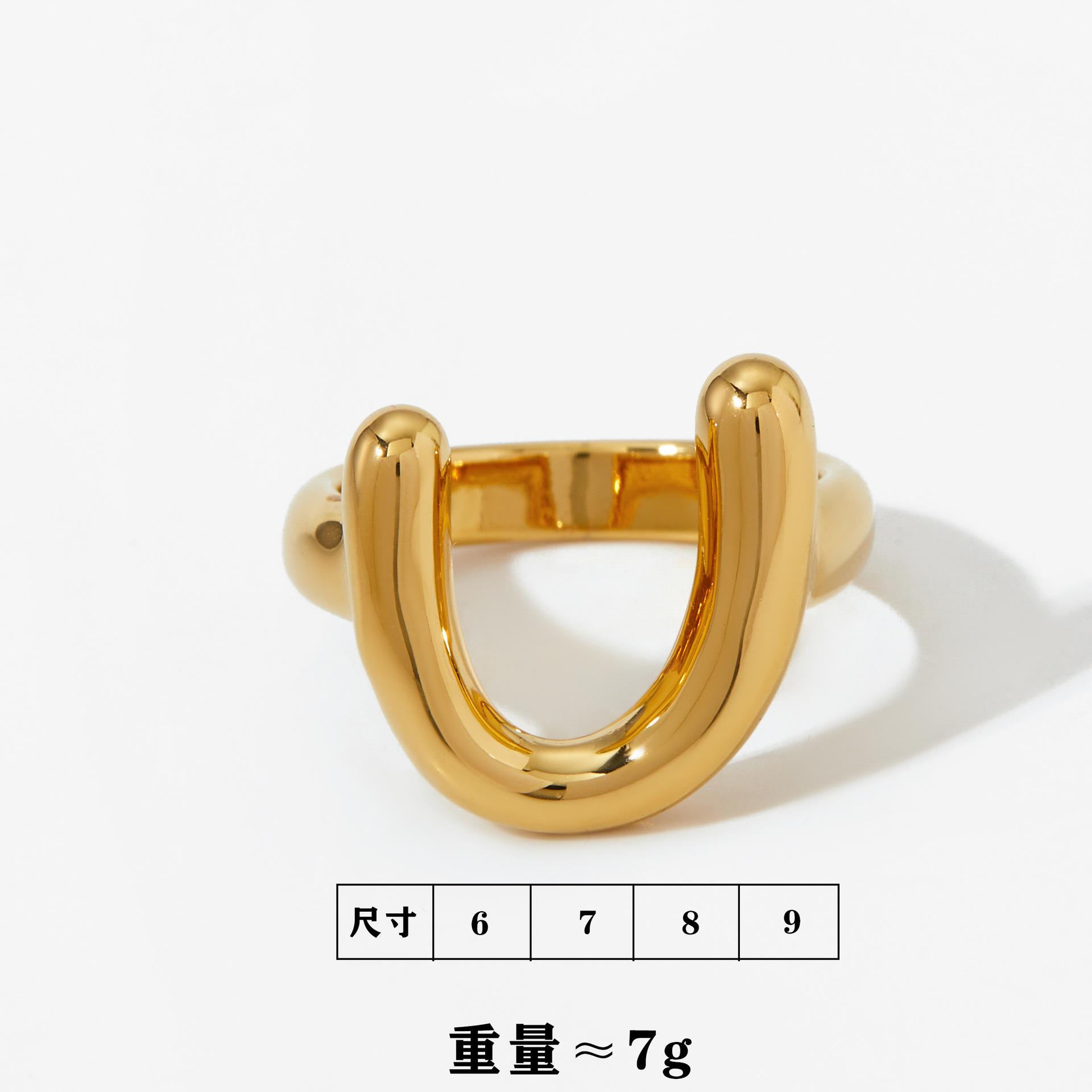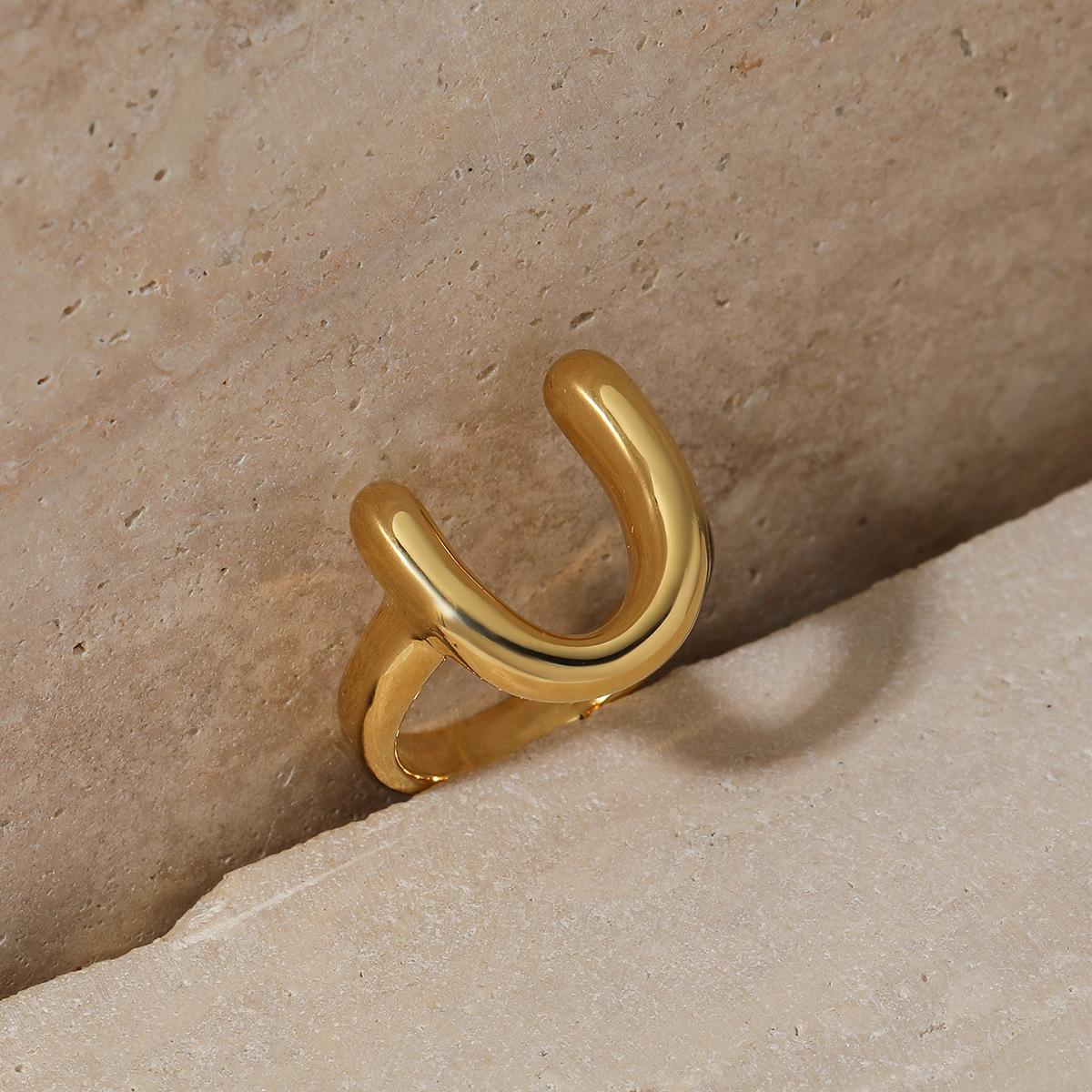 Anel Trendy em Aço Inoxidável 316 em Forma de U Venda Quente Transfronteiriça Feminino Personalizado Hip-hop Elegante Anel Banhado a Ouro de Alta Qualidade