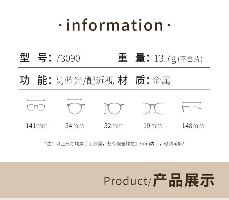 73090 Óculos de armação generosa estilo coreano para mulheres podem ser equipados com alta miopia e astigmatismo armação grande para olhos pequenos