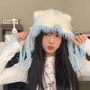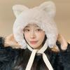 Chapéu de lã de orelha de gato de pelúcia infantil outono e inverno rosto pequeno quente coreano chapéu de malha bonito proteção de orelha chapéu frio elegante