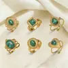 Anel Feminino Europeu e Americano Aço Inoxidável Turquesa Anel Aberto Ins Aço Titânio Jóias de Mão Cross-border Retro Anel de Diamante
