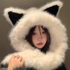 Chapéu de pelúcia e grosso com orelhas de raposa cachecol para mulheres 2024 outono e inverno quente e com rosto mostrando chapéu Lei Feng