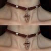 Spice Girl Estilo Vinho Tinto Couro Cruz Gargantilha Colar Clavícula Corrente Branco Colar 2024 Novo