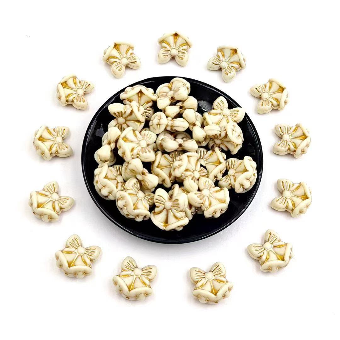 Ivory white gold thread bow bell
