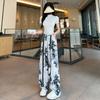 Calças femininas casuais com cordão e cintura solta, novas calças retas, primavera 2024, 464888