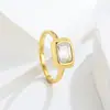 Anel casual estilo francês, anel de aço de titânio, anel de diamante quadrado simples, anel de moda, tudo combinado, anel leve e luxuoso banhado a ouro