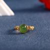 S925 Prata Banhado Ouro Incrustado Natural Hotan Jasper Geométrico Quadrado Oco Corrente Estilo Distinto Fivela de Orelha Feminina