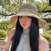 Chapéu de sol de aba grande de verão, chapéu de palha com borda de lótus e laço da moda, chapéu de praia de renda para mulheres