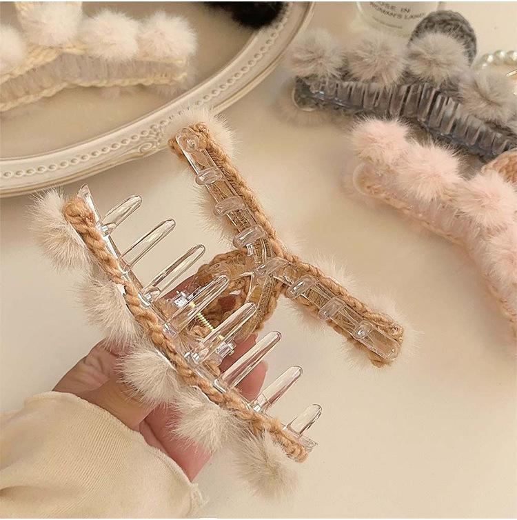 Outono e Inverno Grampo de Cabelo de Pelúcia Feminino Prendedor de Cabelo para a Parte de Trás da Cabeça Grampo Grande 2025 Novo Grampo Tubarão Grande Acessório de Cabelo
