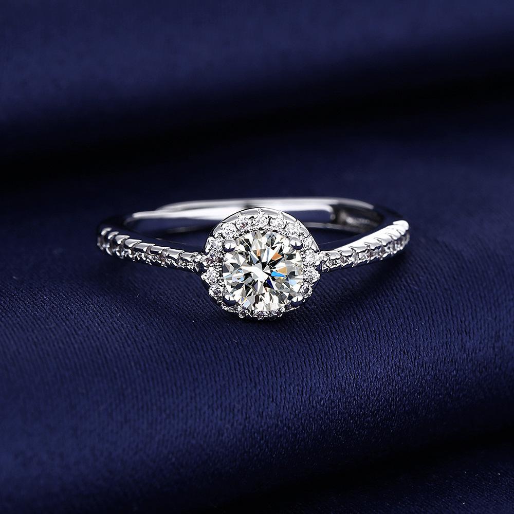 Compre Viva com bens bolsa redonda princesa 50 pontos anel simples e generoso moda feminina Joker Mosan anel de diamante outlet de fábrica no atacado no Joom.pro
