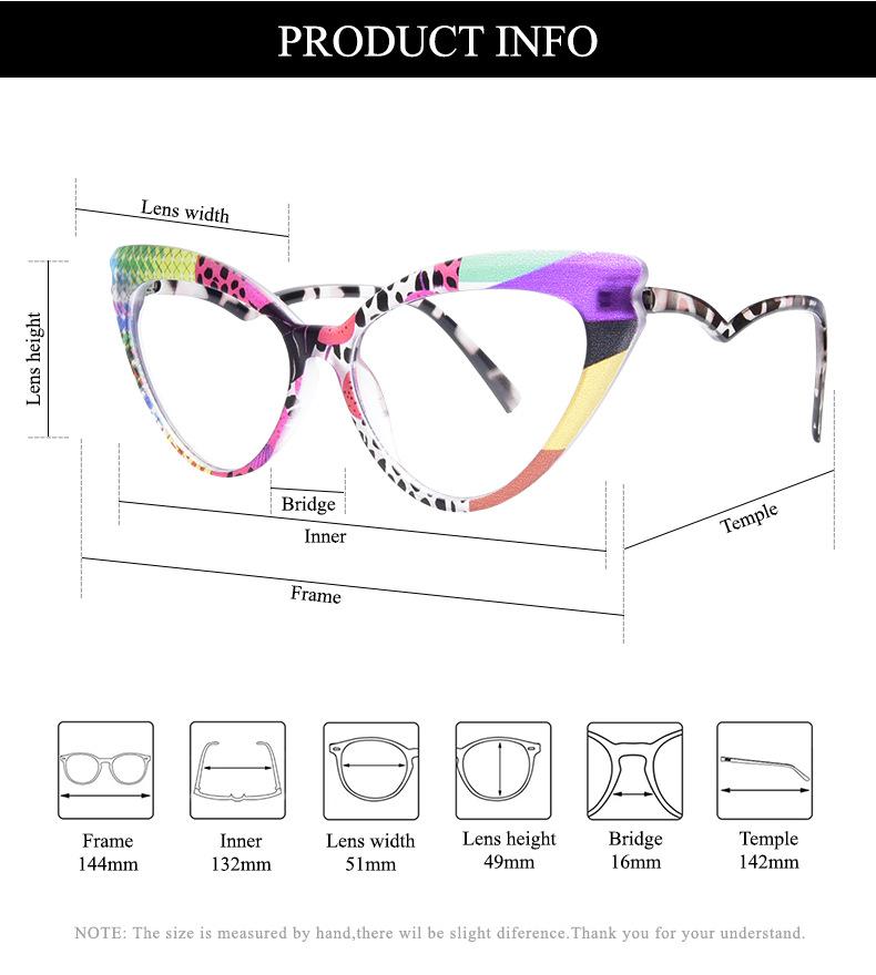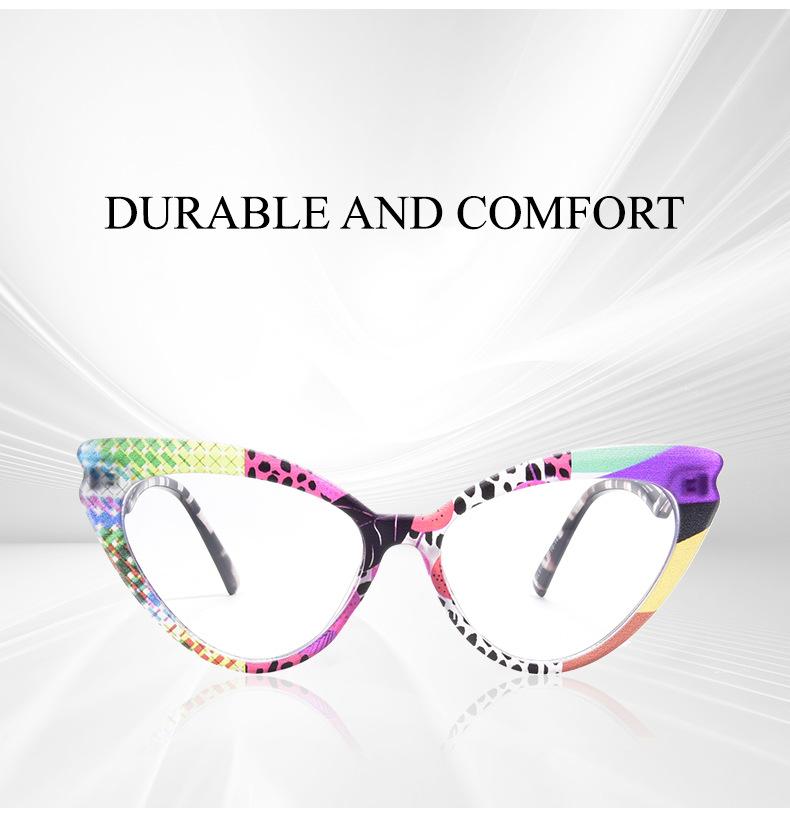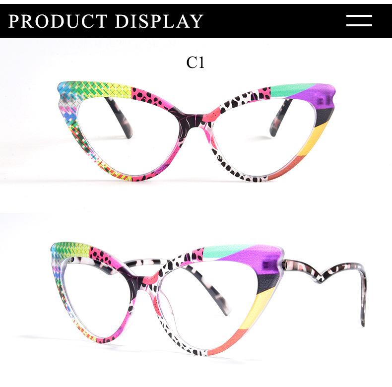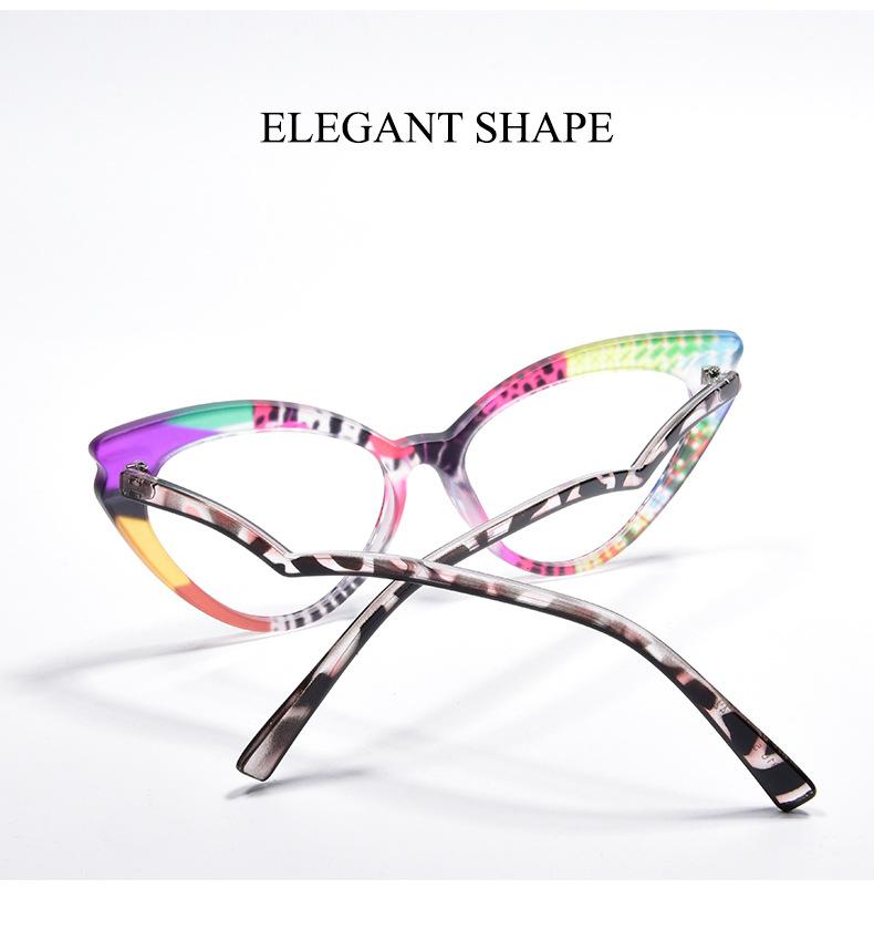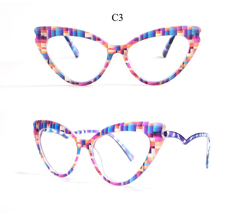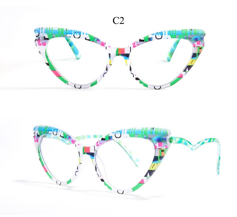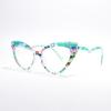 Armação Nova Cor Transfronteiriça Olho de Gato Espelhos Planos Moda Europeia e Americana Cor Floral Luz Anti-Azul Óculos Simples Atacado em Estoque