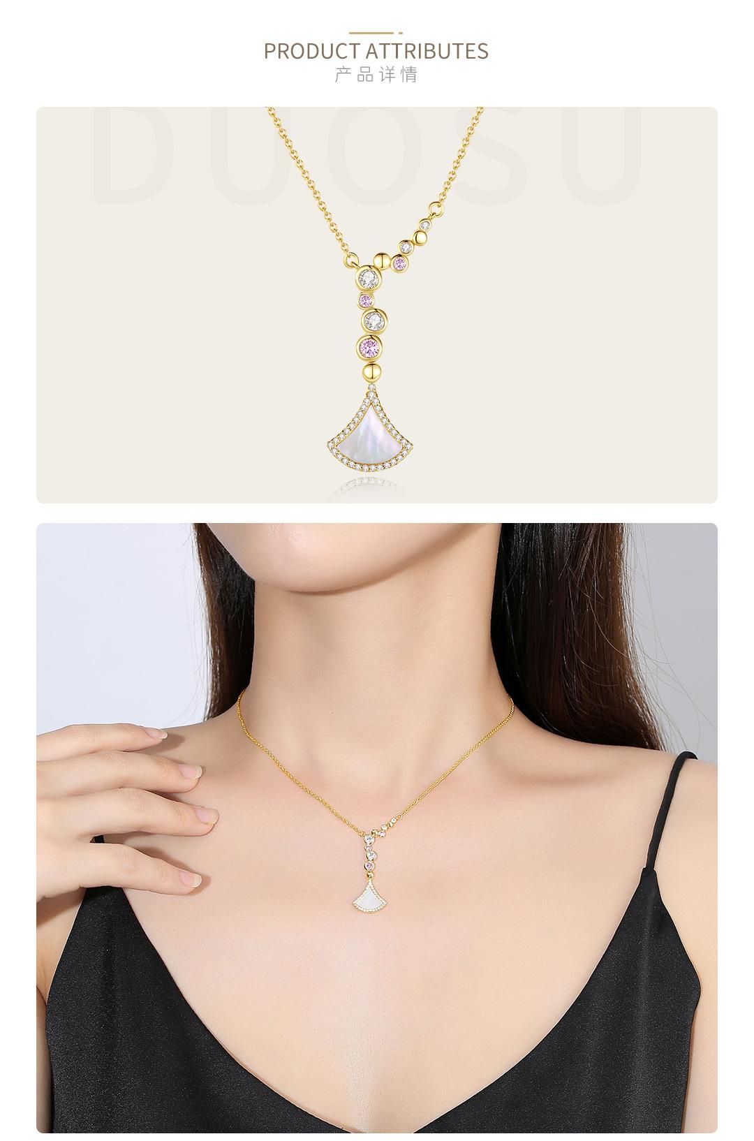 Colar de Saia de Concha Branca Estilo Europeu e Americano com Diamantes para Mulheres Banhado a Ouro K Design Sofisticado Conjunto de Pulseira, Brincos e Corrente para Clavícula