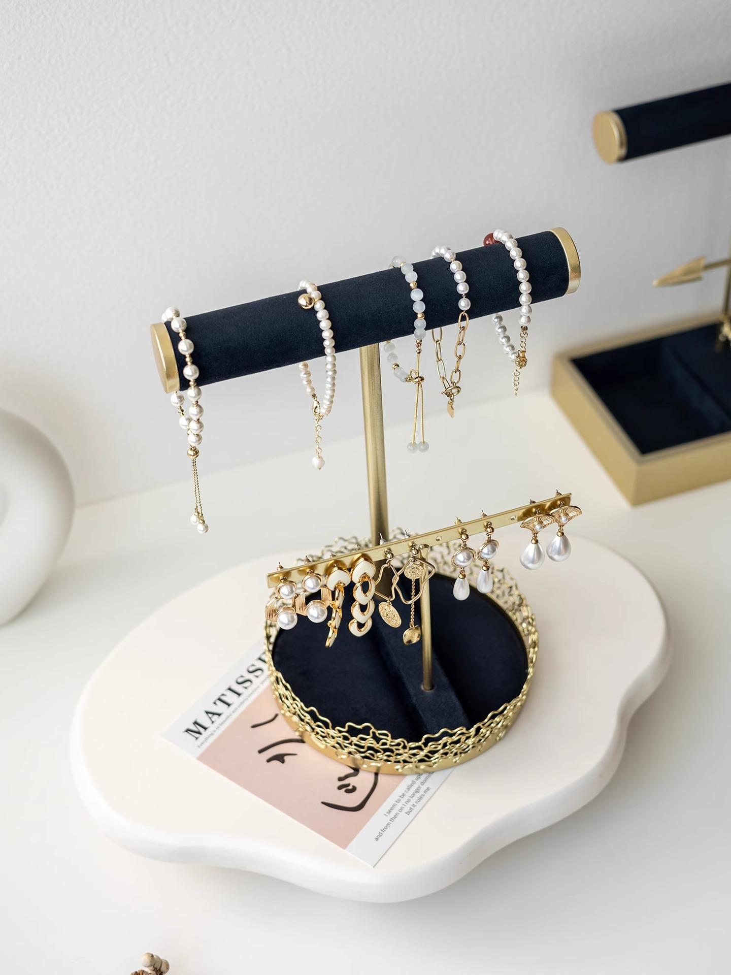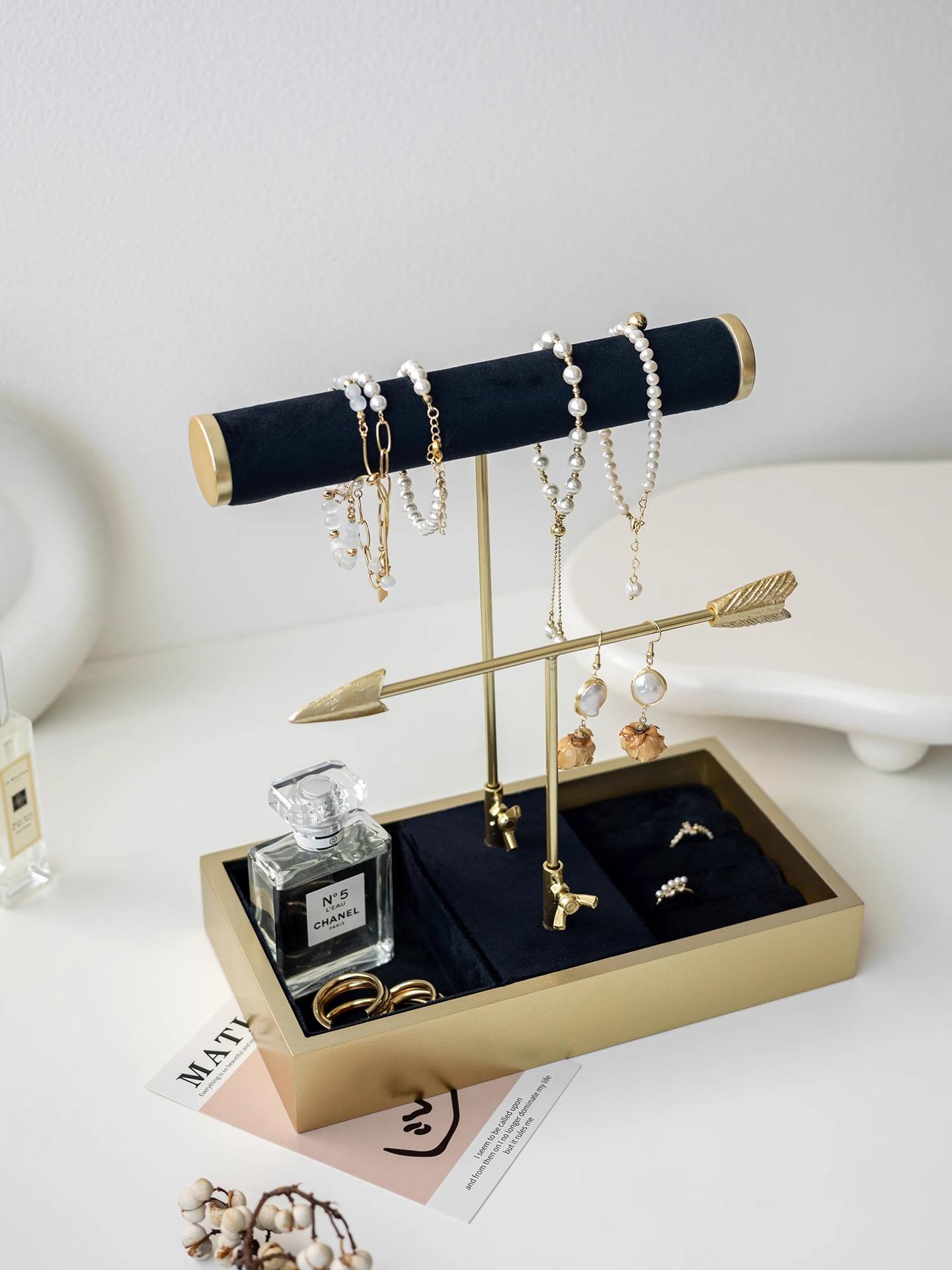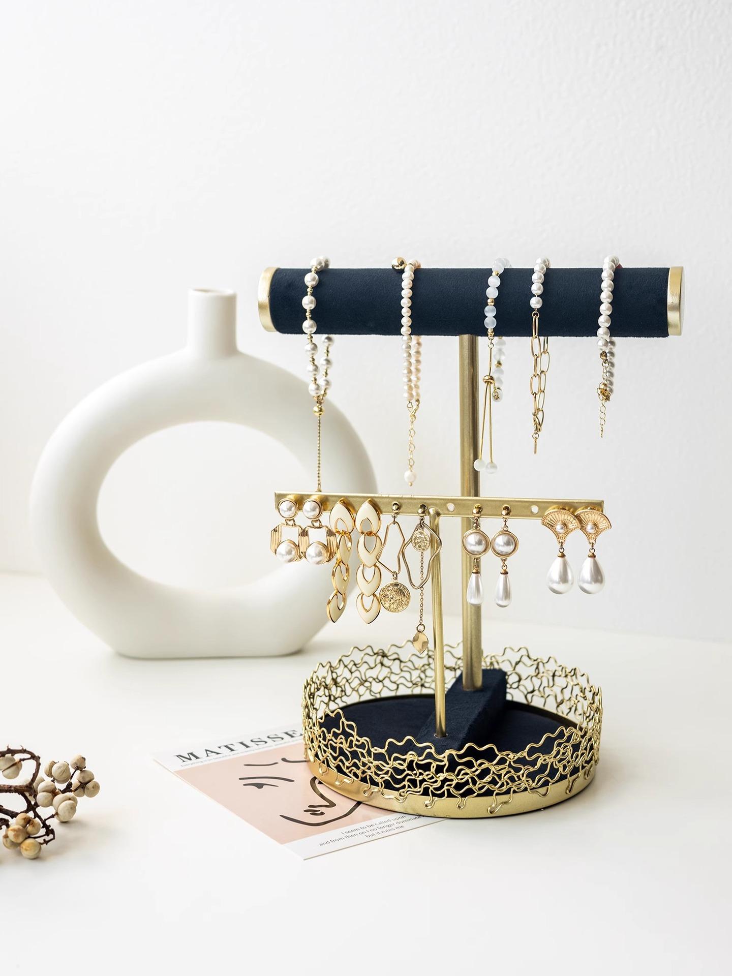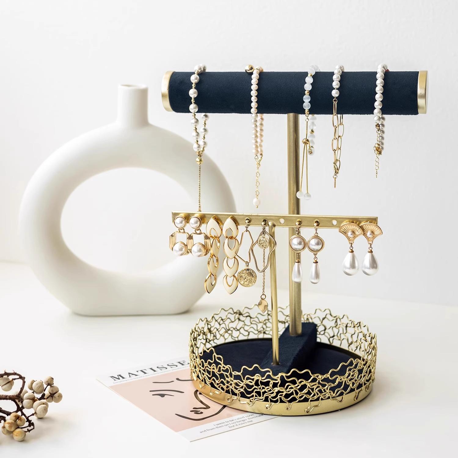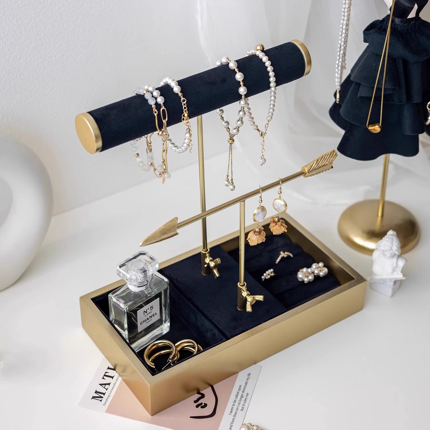 Preto Jóias Display Rack Colar Pulseira Brincos Cabide Exibição Jóias Anel Caixa De Flanela Placa De Armazenamento Enfeites