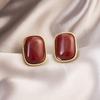 Brincos de pérola geométrica vermelha de angorá de agulha de prata estilo Hong Kong brincos retrô leves de luxo de alta qualidade brincos simples e elegantes para mulheres