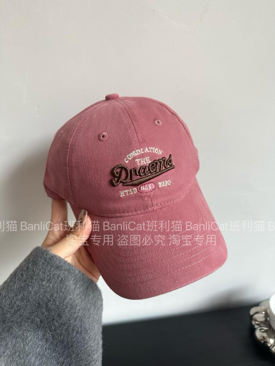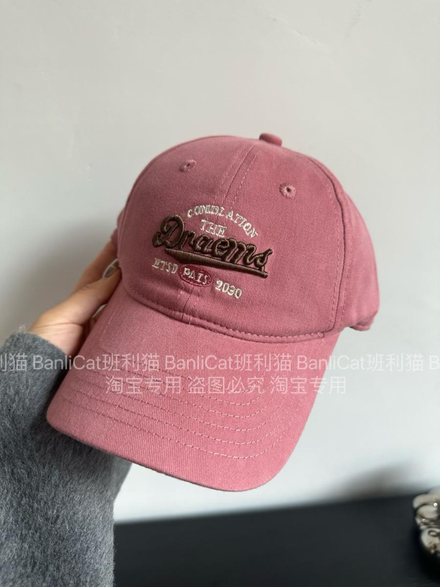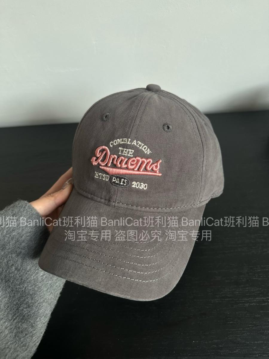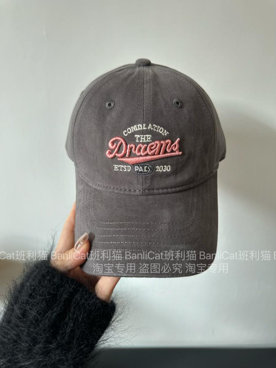 Boné de beisebol estilo americano retrô branco e cinza rosa macio para mulheres com aba larga e grande circunferência da cabeça para homens
