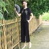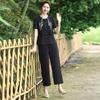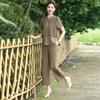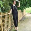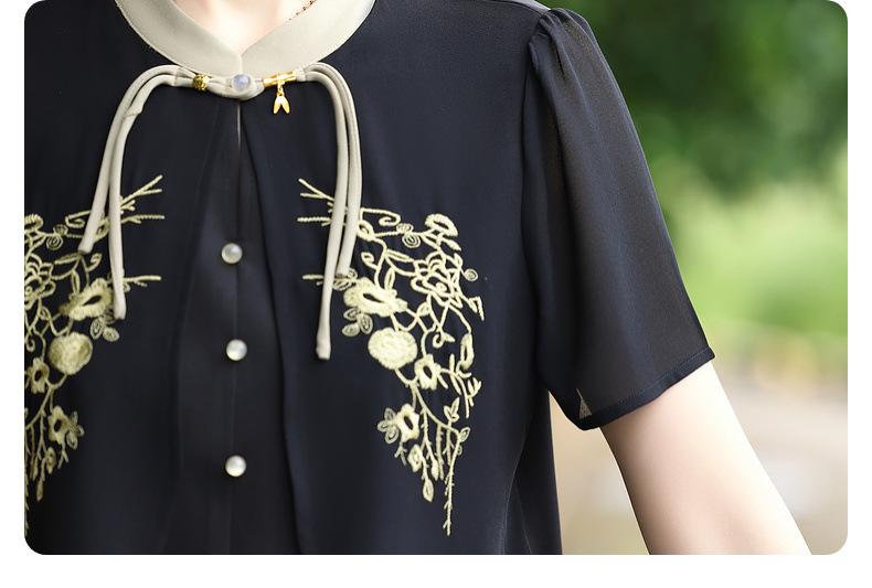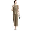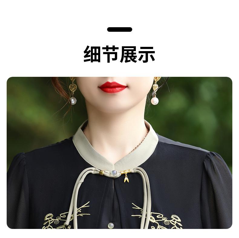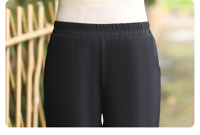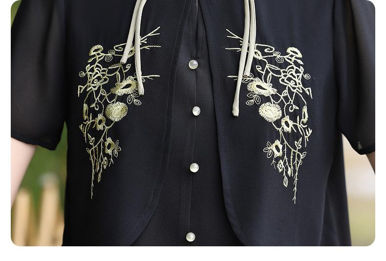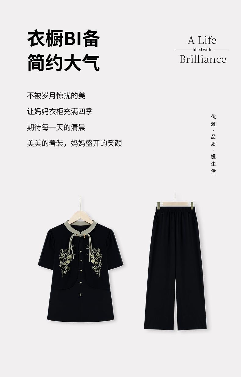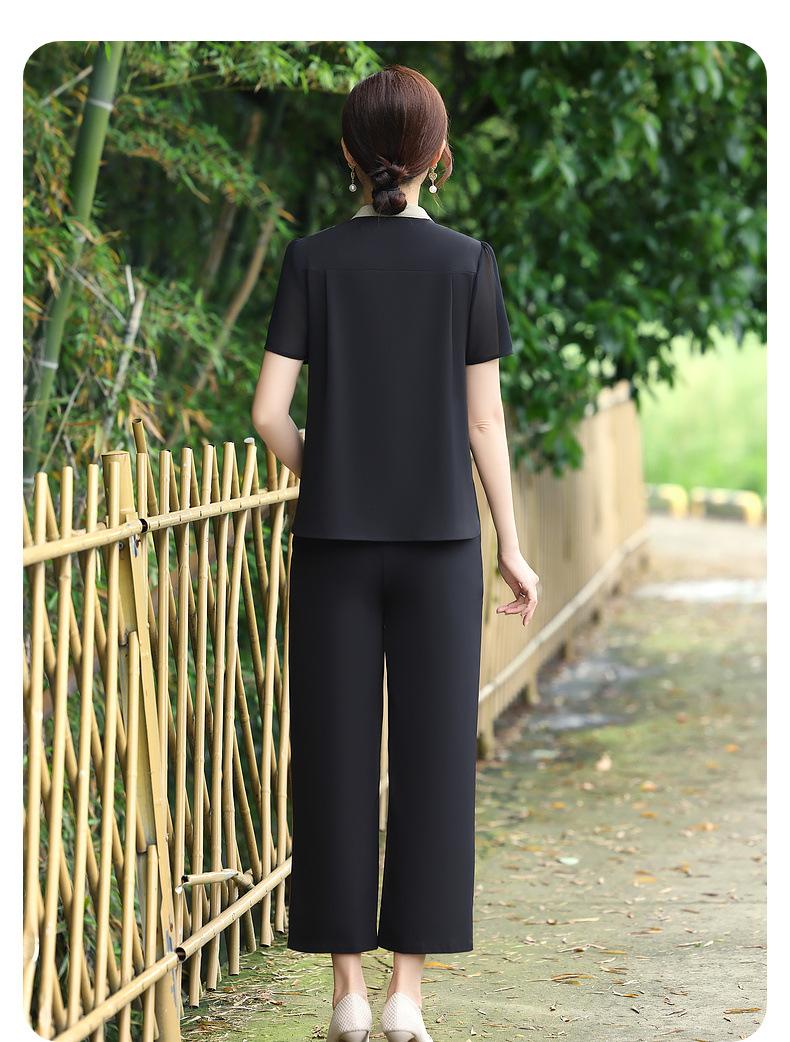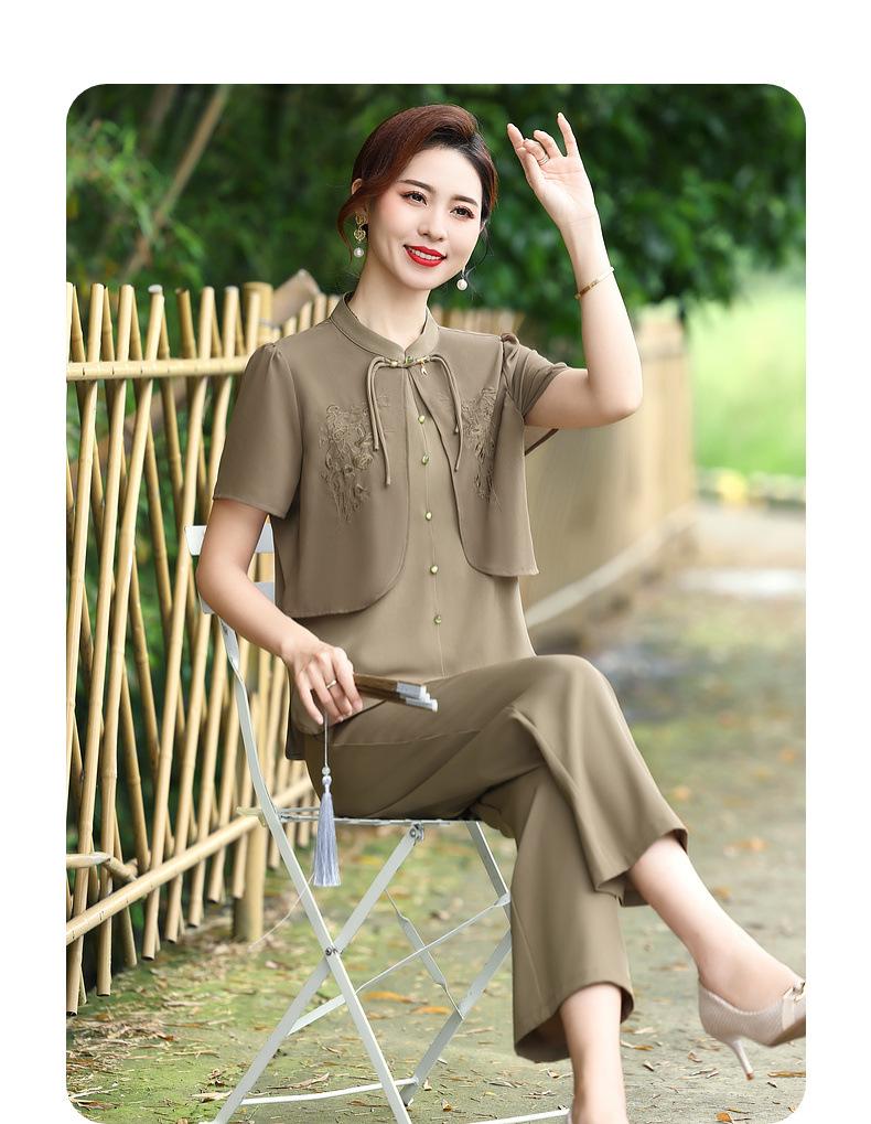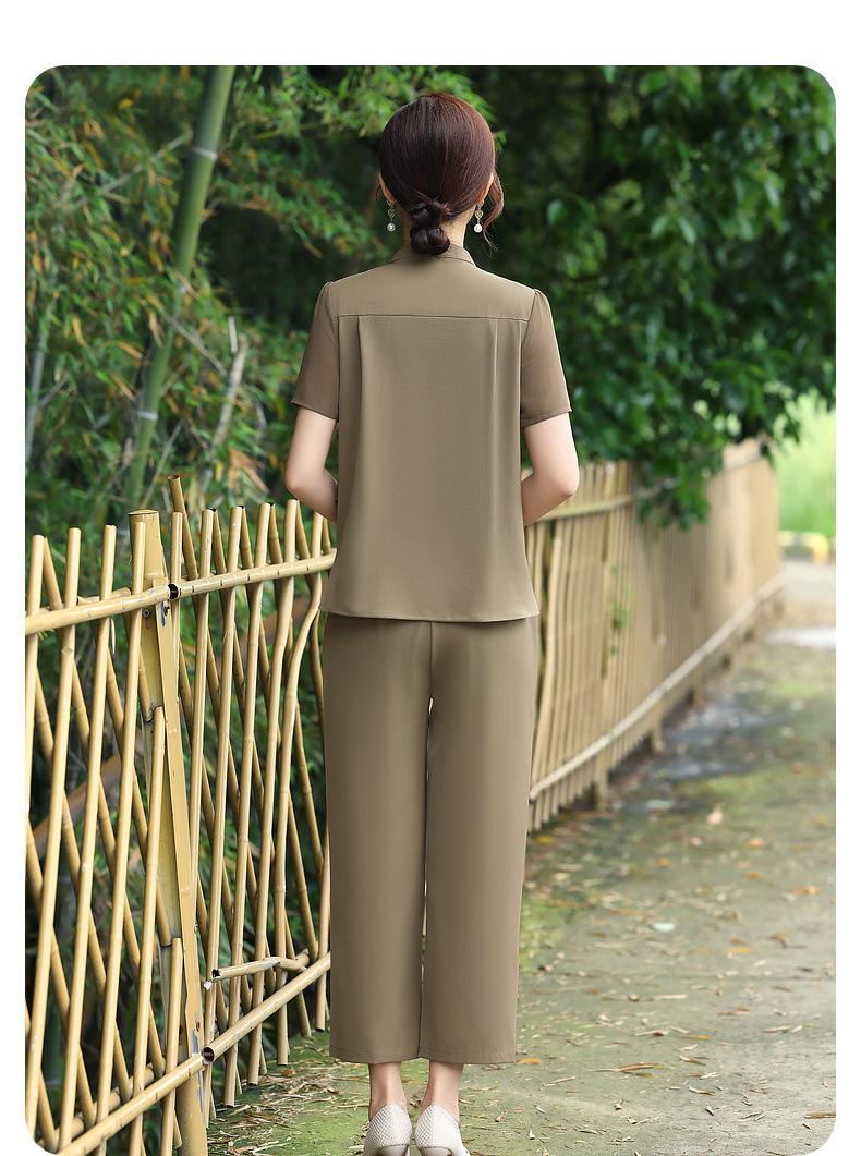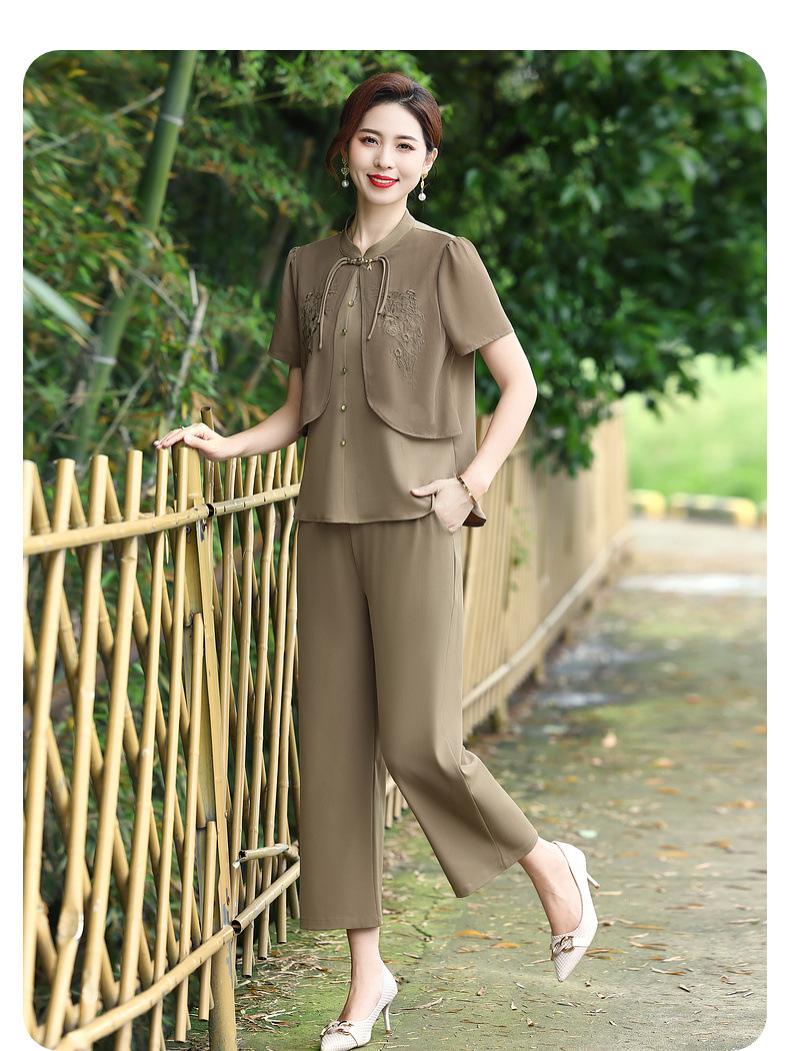 2024 Novo Vestido de Verão para Mães de Meia-Idade Estilo Nacional Terno de Chiffon Manga de Três Pontos Top para Mulheres de Meia-Idade e Idosas Elegante Conjunto de Duas Peças
