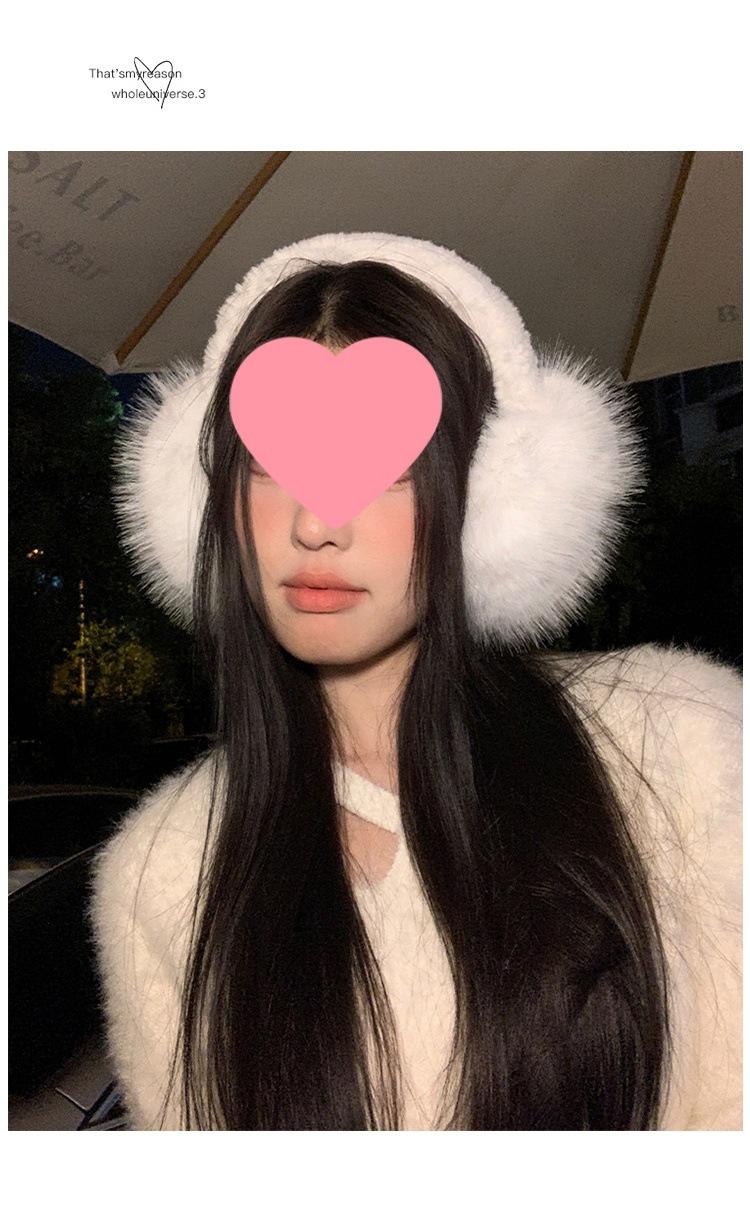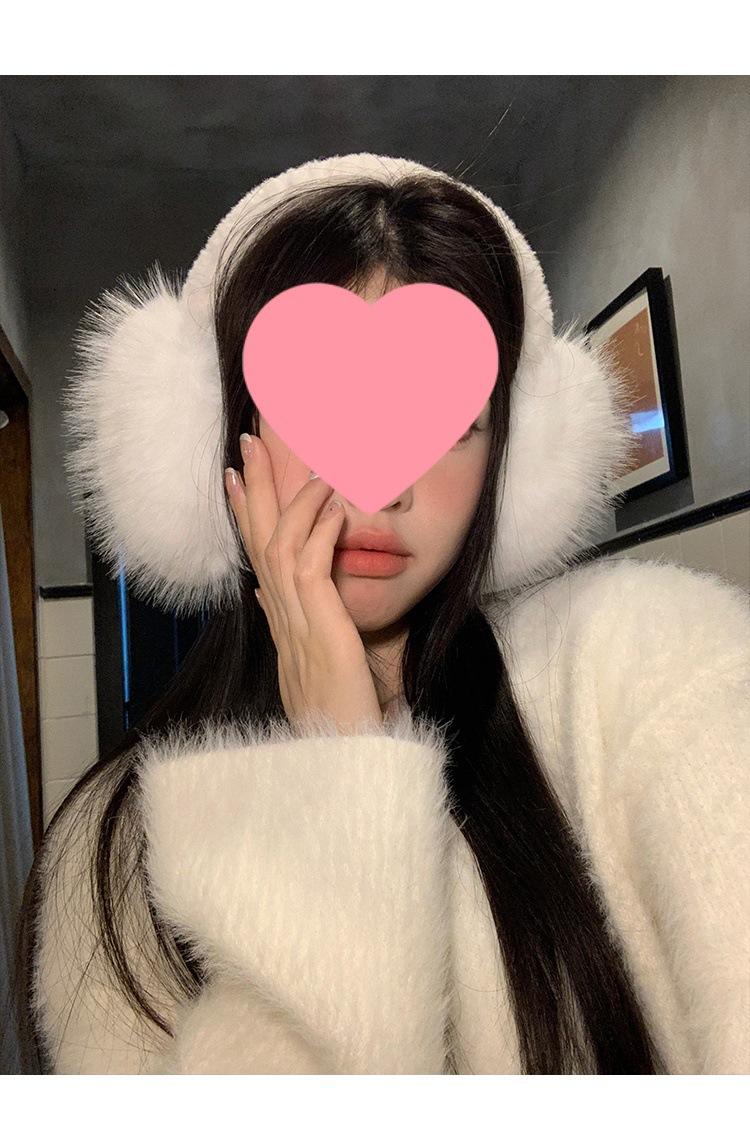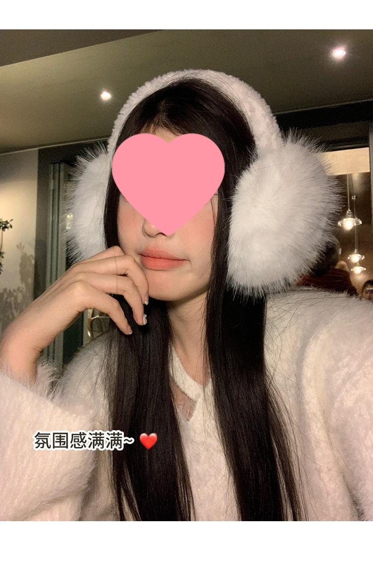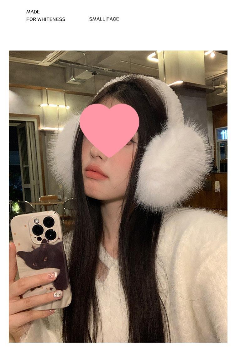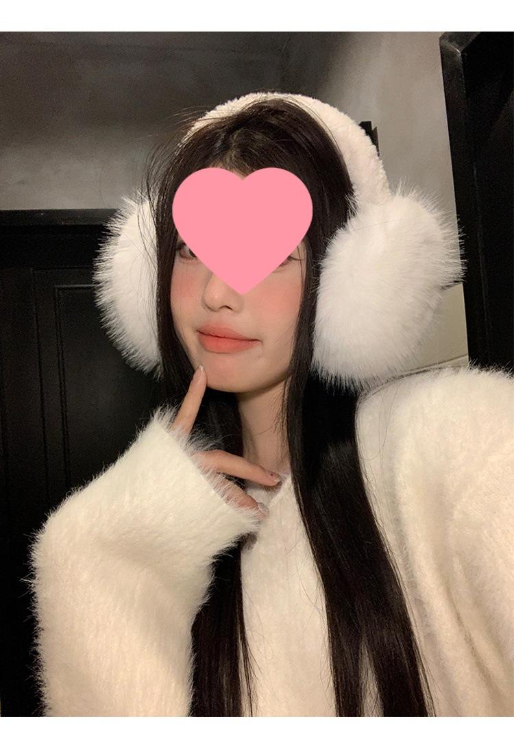 Capa de orelha de pelúcia macia e fofa de pelo de coelho branco para ciclismo, máscara de ouvido anticongelante, máscara de ouvido de inverno para mulheres, à prova de vento, quente