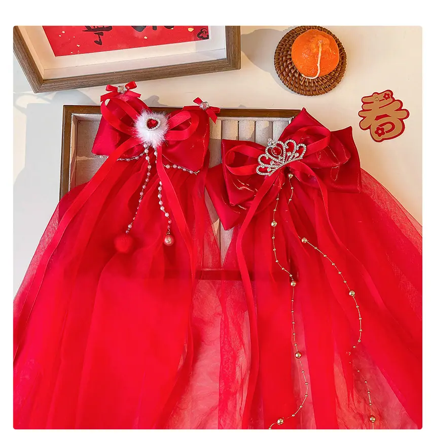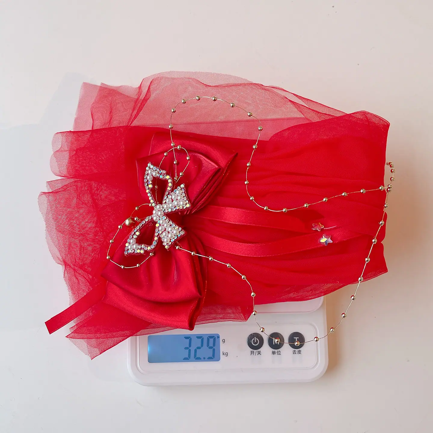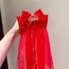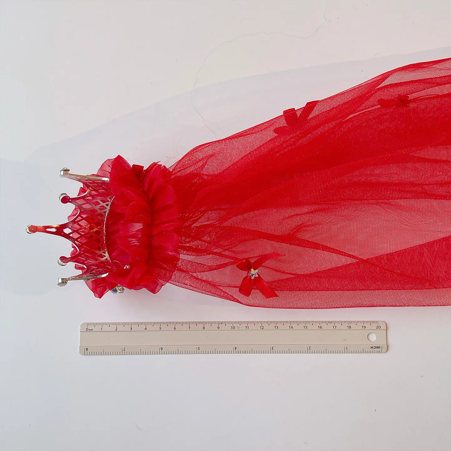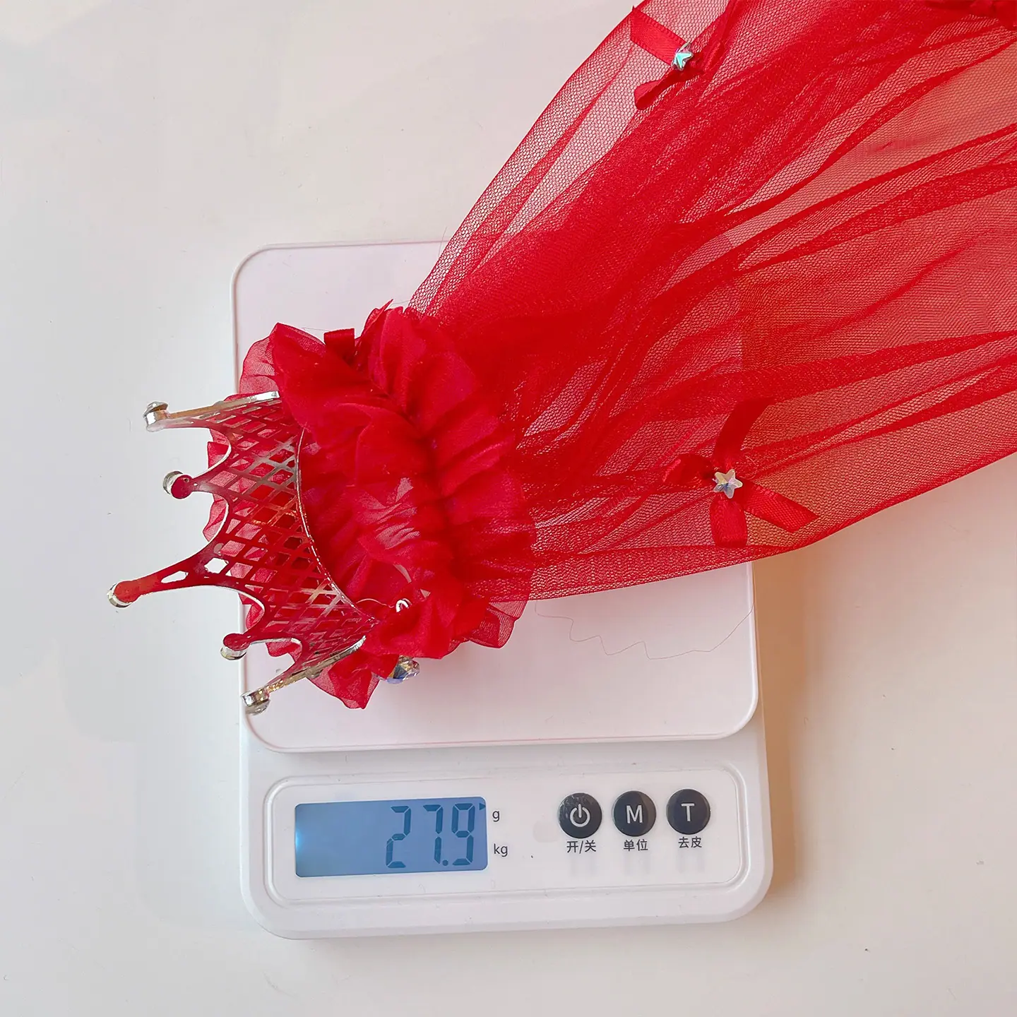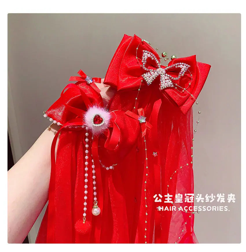 Meninas Red Pearl Crown Bow Veil Ano Novo Infantil Fada Cabelo Acessórios Elegante Doce Vestido Headwear Lote