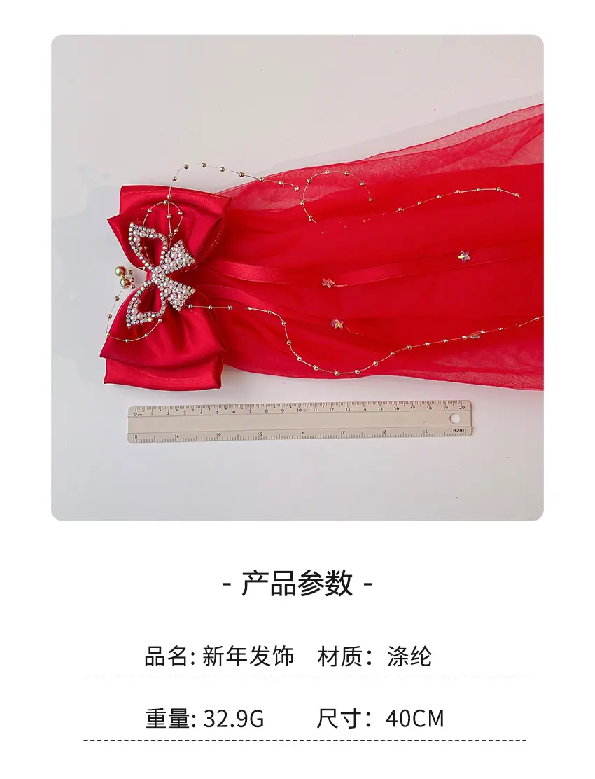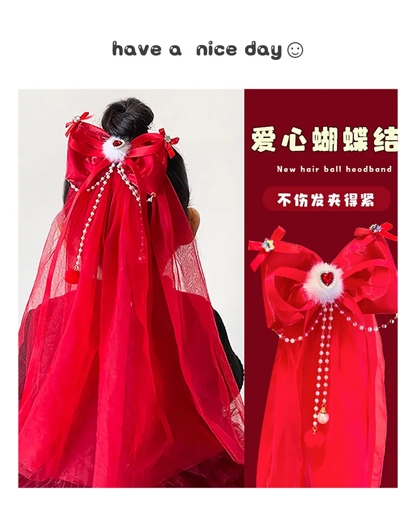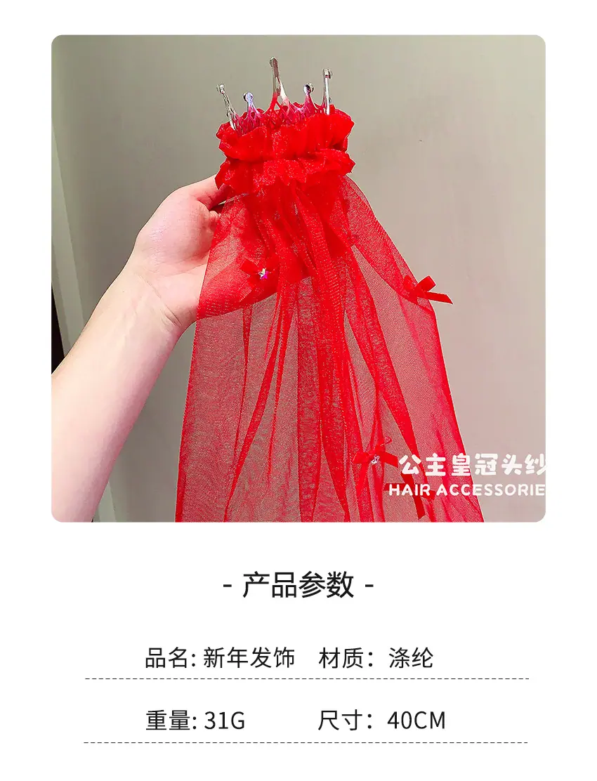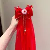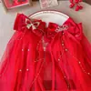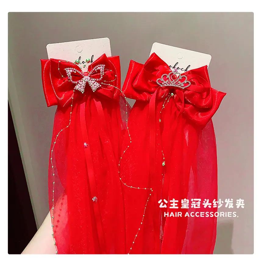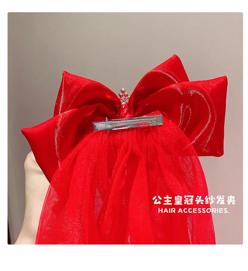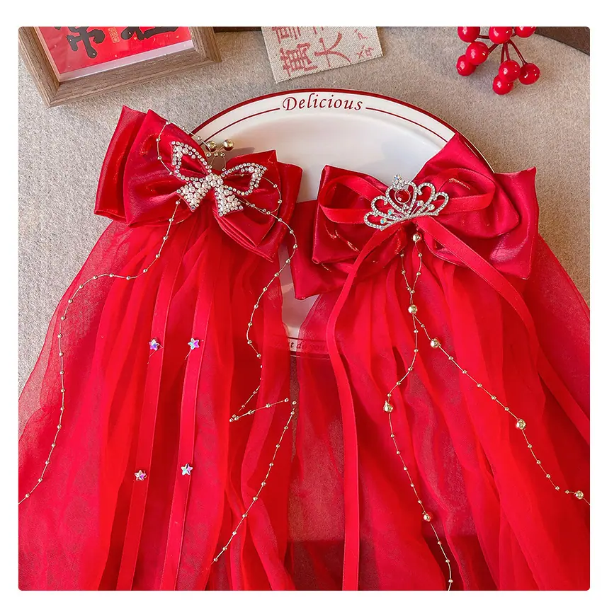 Meninas Red Pearl Crown Bow Veil Ano Novo Infantil Fada Cabelo Acessórios Elegante Doce Vestido Headwear Lote