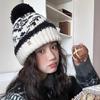 Chapéu de lã com bola de pelo retrô Fairisland, chapéu feminino de outono e inverno, pequeno, quente, proteção para orelhas, chapéu frio, chapéu de malha Baotou