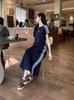 Terno esportivo casual feminino Three-bar Bow Short-sleeved T-shirt Verão Hip Skirt Sweet Spice Girl Conjunto de duas peças 6