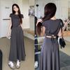 Camiseta de manga curta feminina malha lantejoulas saia estudante 2023 verão nova chegada saia vestido de fada comprimento médio conjunto de duas peças