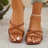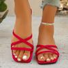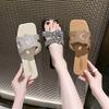Chinelos rasos femininos cabeça quadrada plus size sandálias casuais 2025 novos chinelos de praia chinelos femininos