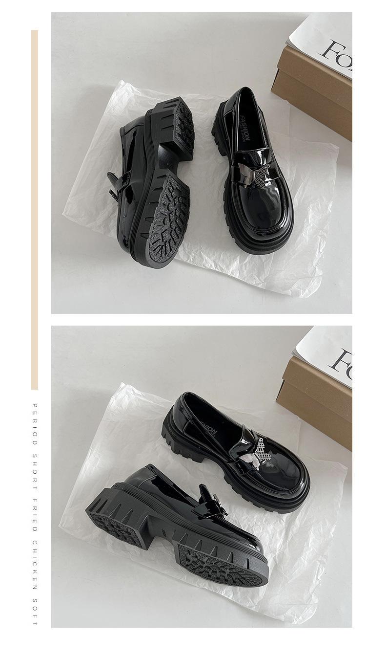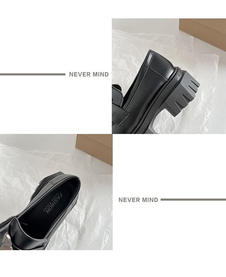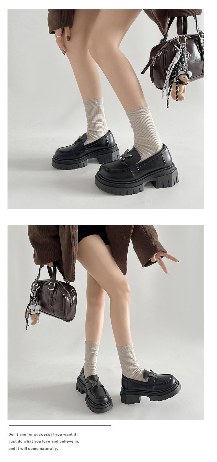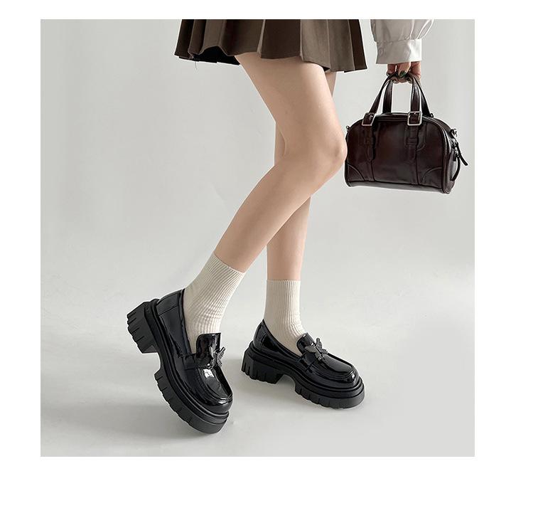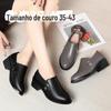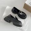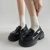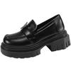 Moda Internet Popular Preto Salto Grosso Sapatos de Couro de Sola Grossa Feminino 2024 Novos Sapatos de Primavera e Outono Slip-on Estilo Britânico Lefu