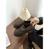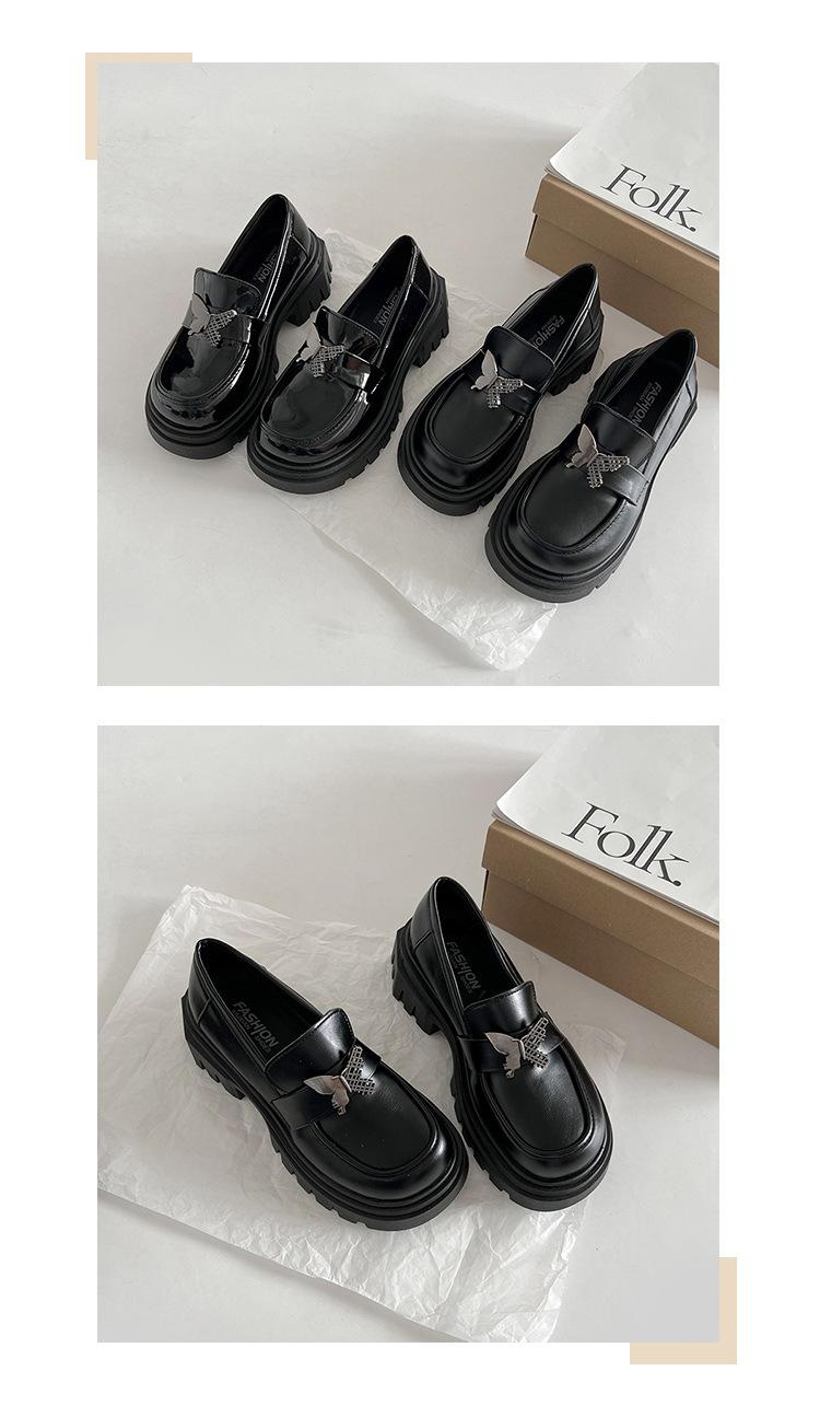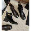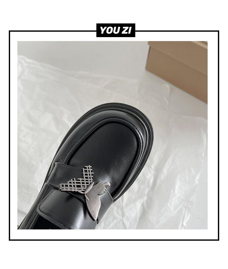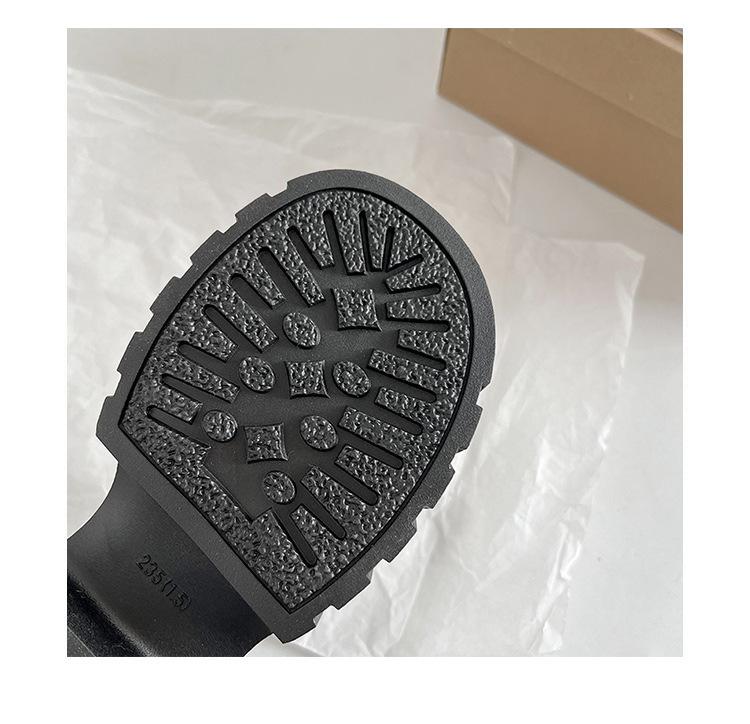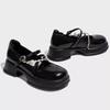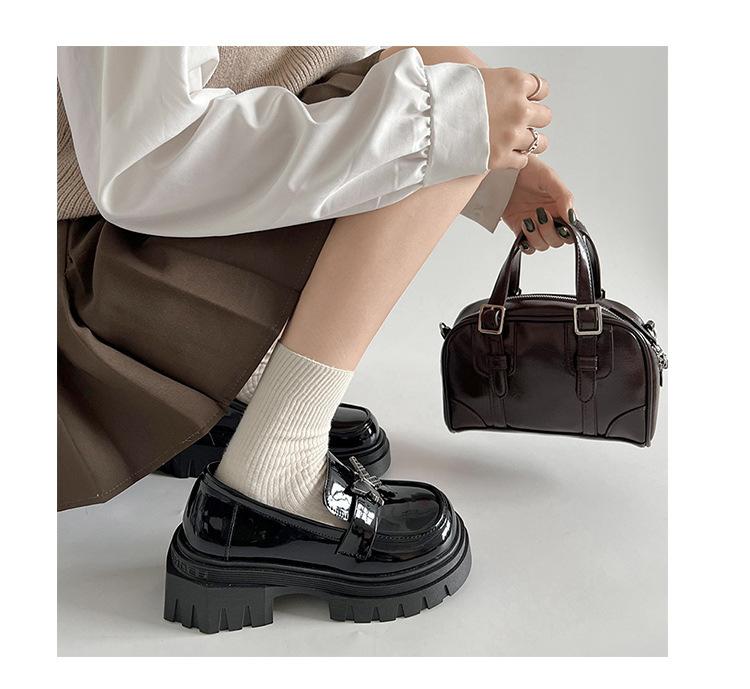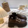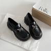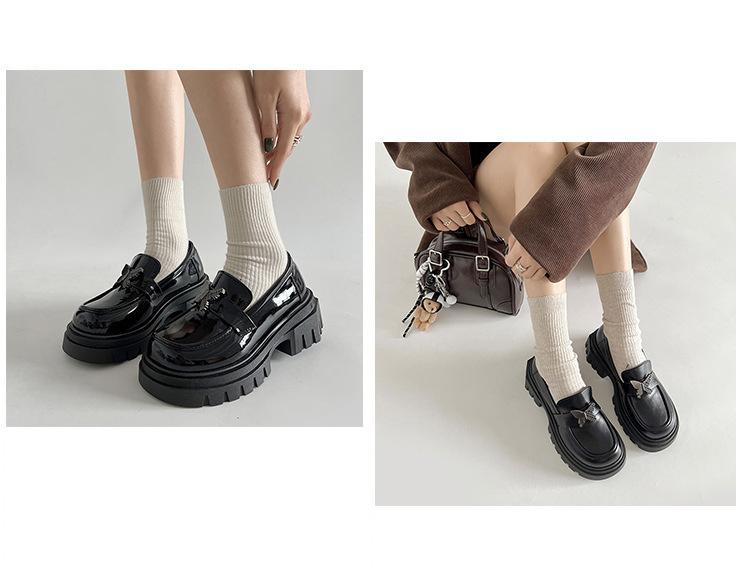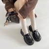 Moda Internet Popular Preto Salto Grosso Sapatos de Couro de Sola Grossa Feminino 2024 Novos Sapatos de Primavera e Outono Slip-on Estilo Britânico Lefu