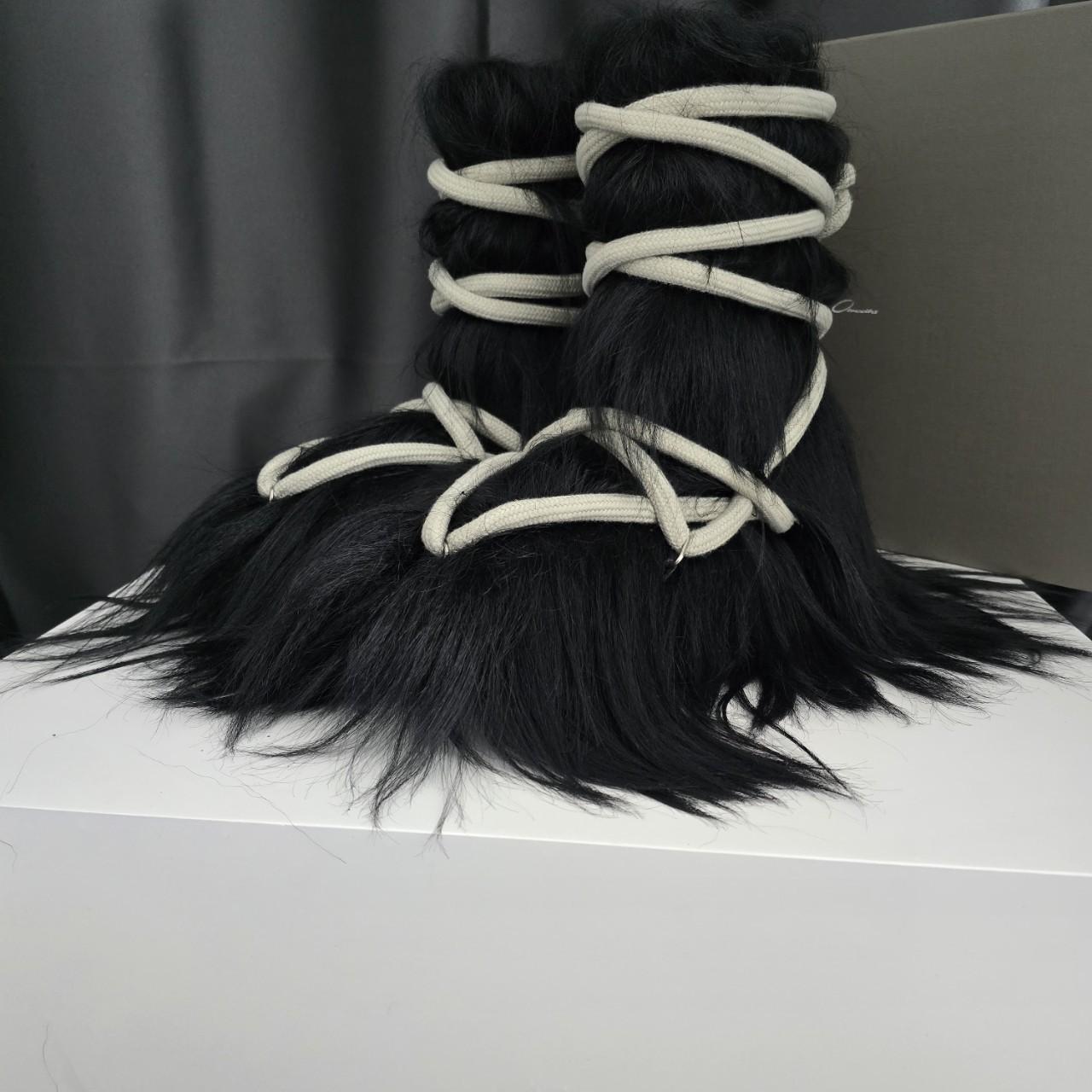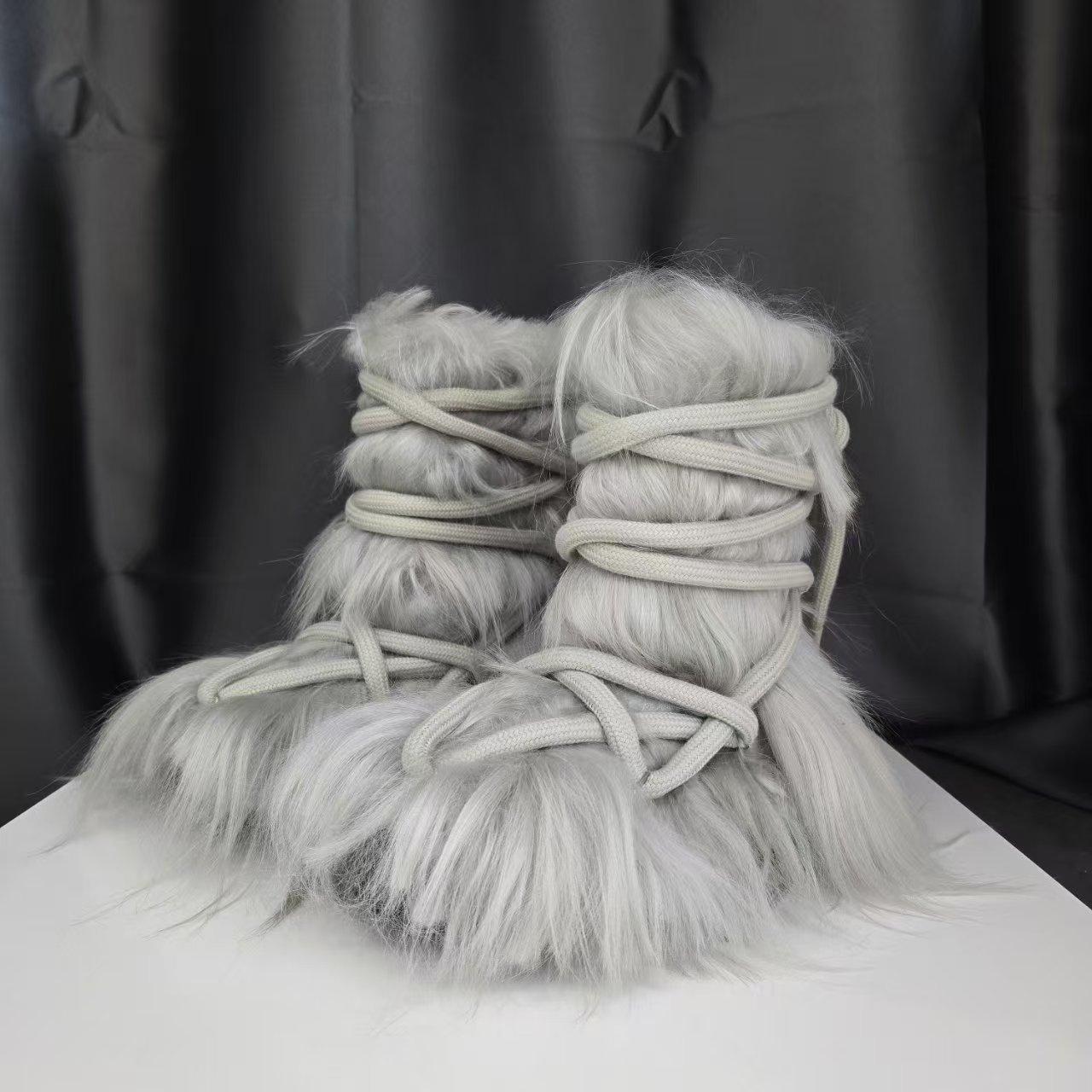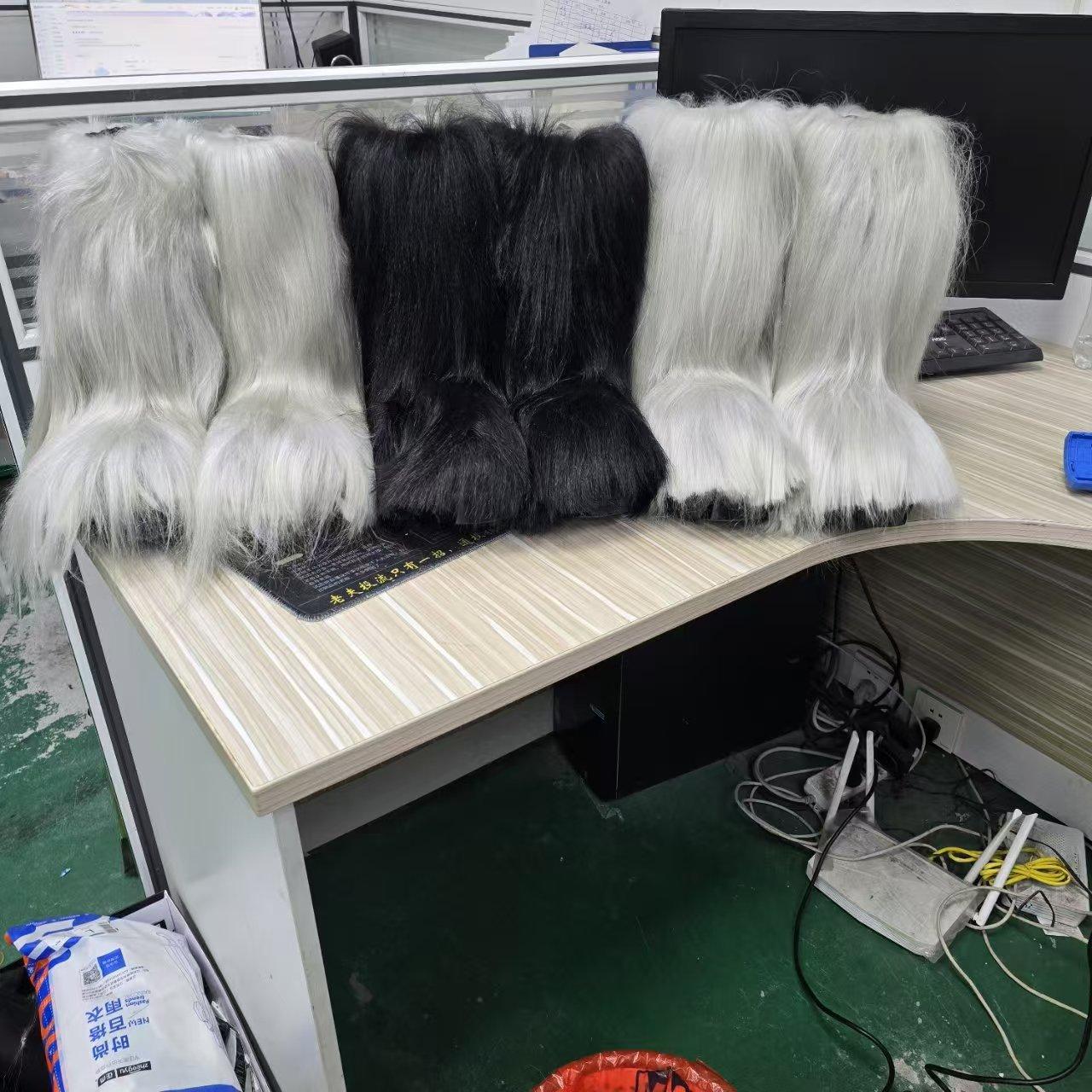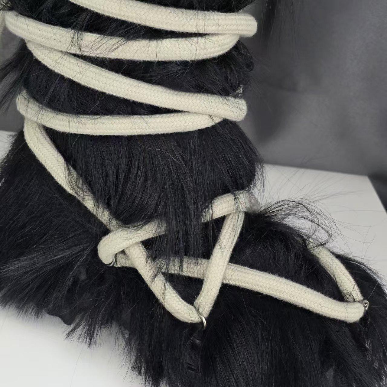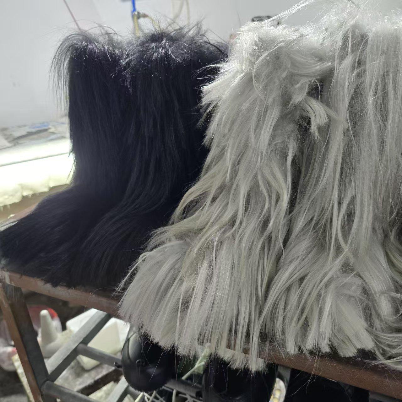 Black horse arm long hair boots, Silver-gray horsehair long boots