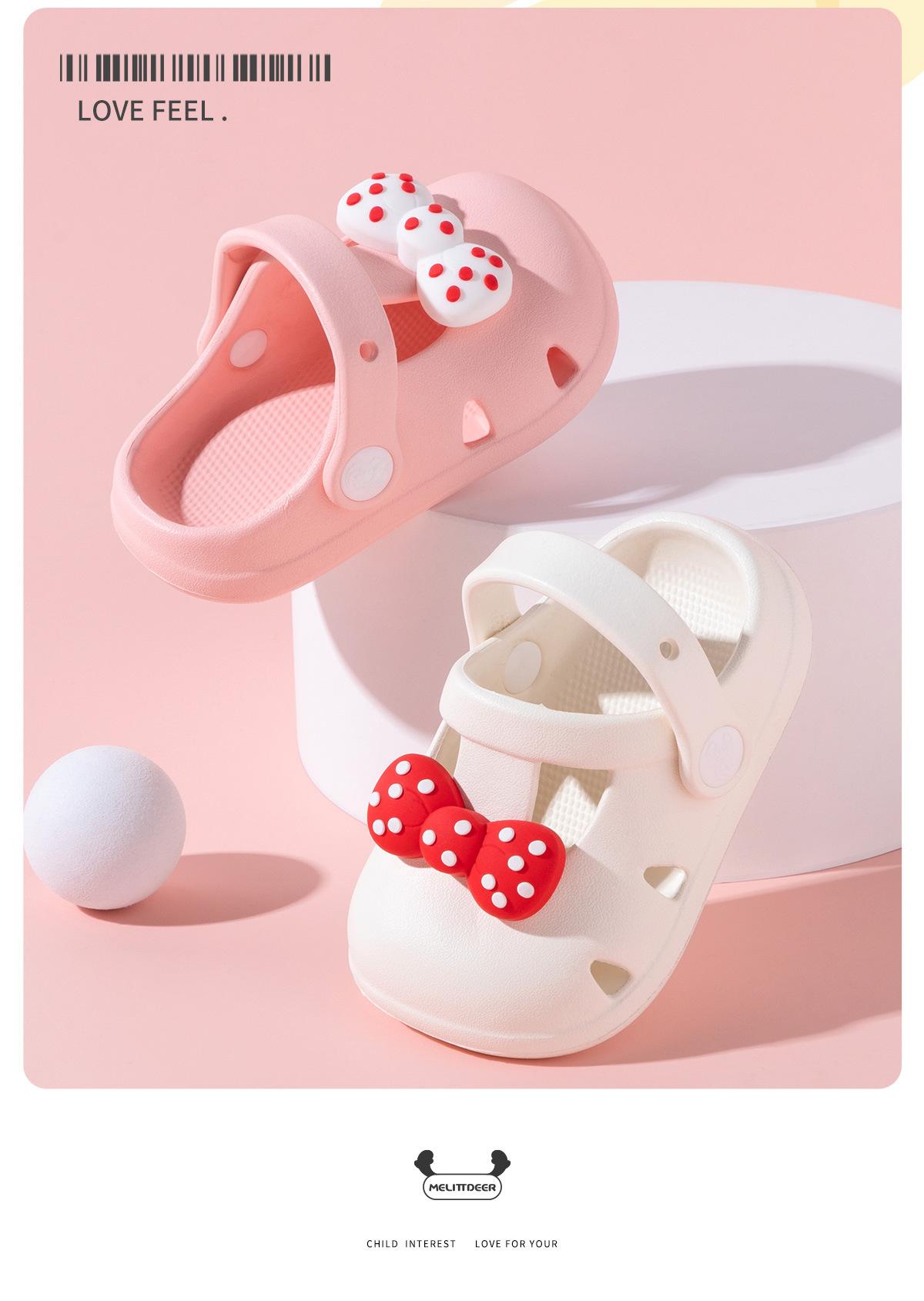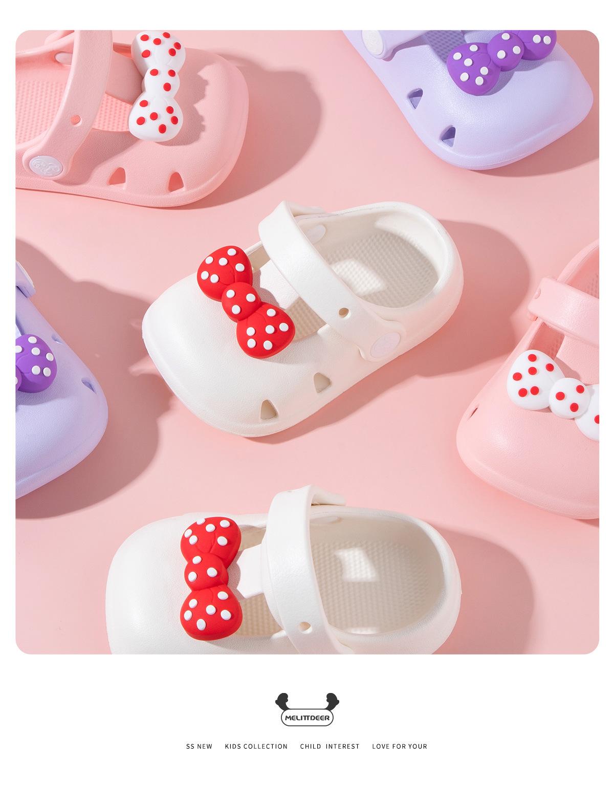 Crianças dos desenhos animados bonito buraco sapatos verão atacado bebê meninas arco sandálias chinelos respirável resistente ao desgaste sandálias verão