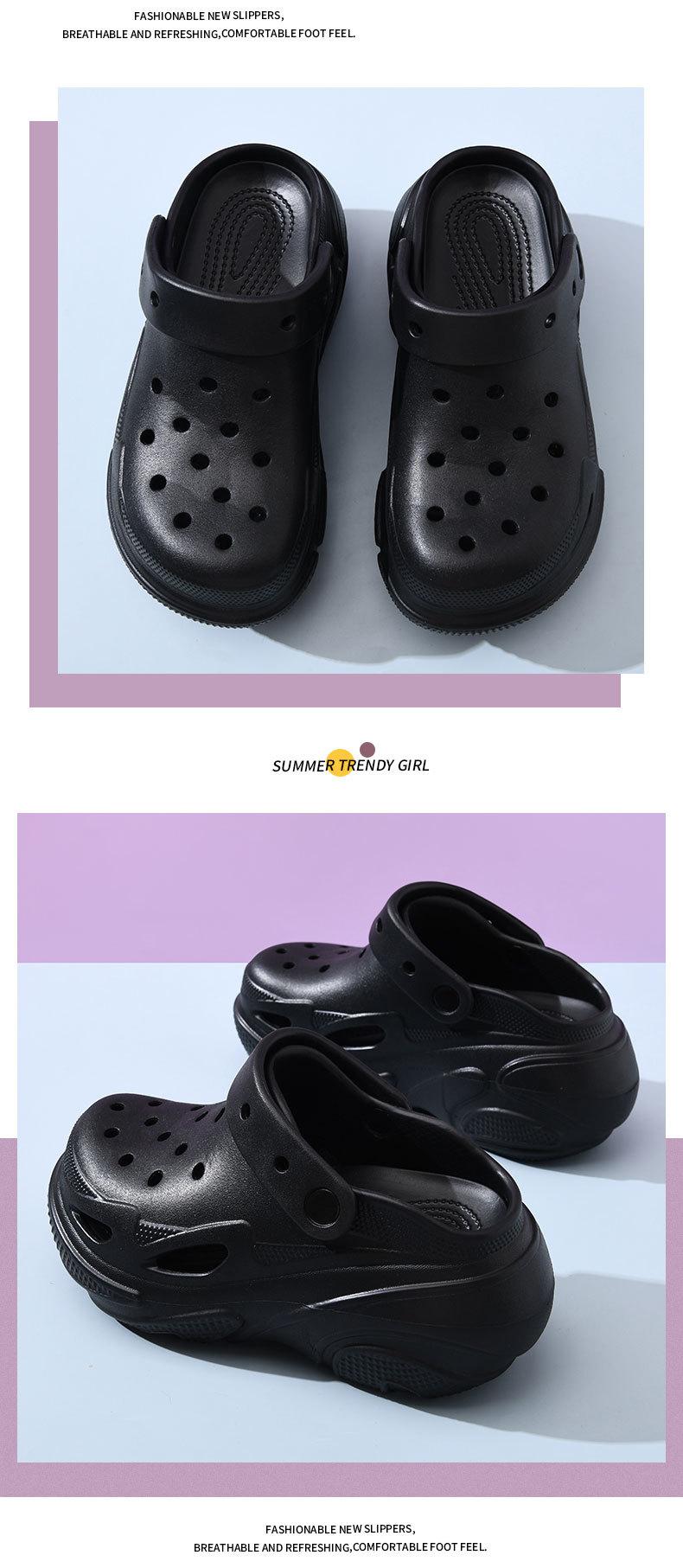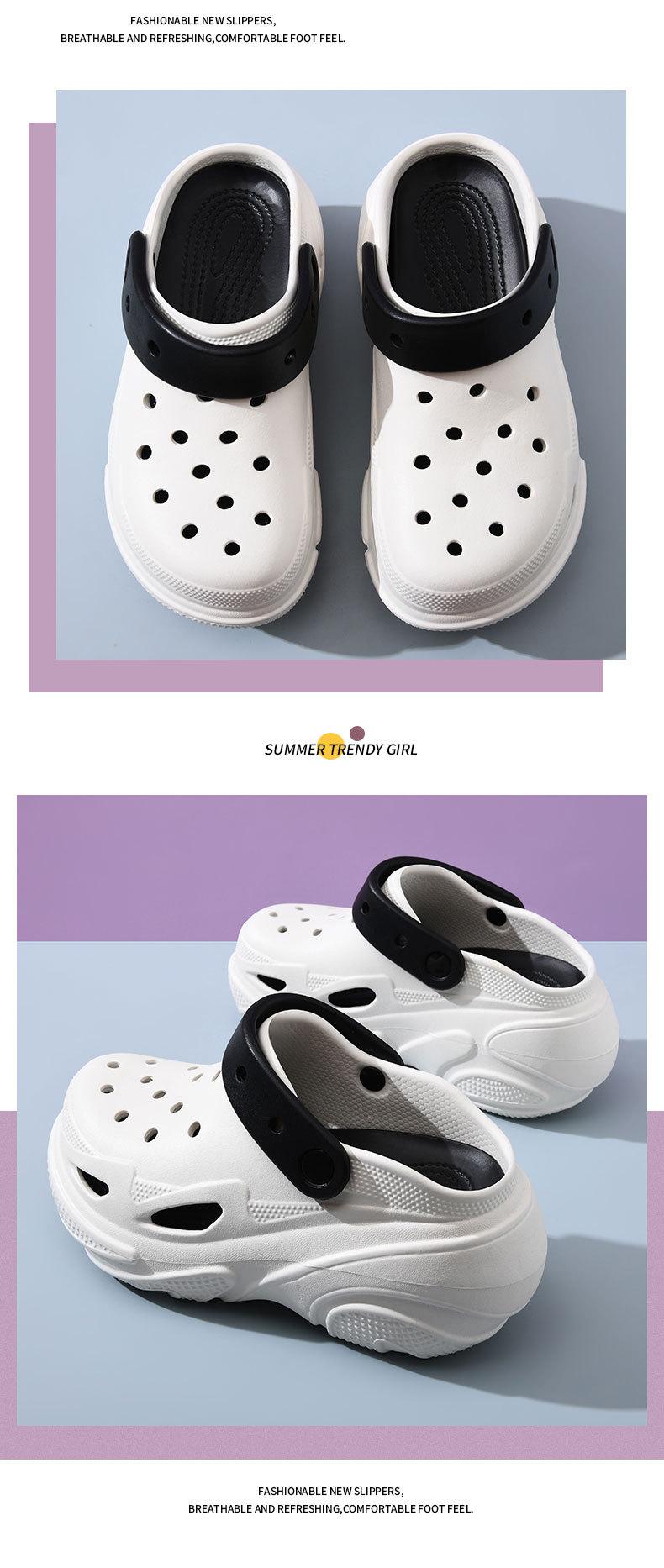 Sapatos de sola grossa com buracos para uso externo feminino verão novo estilo baotou reboque aumentando EVA pés não fedorentos resistente ao desgaste antiderrapante chinelo