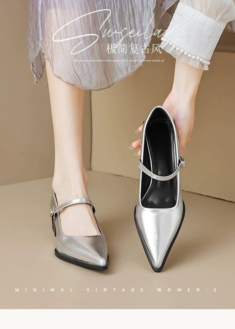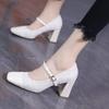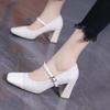Sapatos Mary Jane Sapatos de Salto Grosso Femininos Sapatos Franceses Pretos de Couro Pontudos Moda Feminina All-match Outono Novo 2025