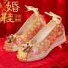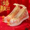 Primavera Nova Chegada Sapatos Hanfu Femininos Antigos Desgaste Altura Interna Aumentando Sapatos Bordados Almofada Antiga Noiva Chinesa Casamento Xiuhe Sapatos de Casamento